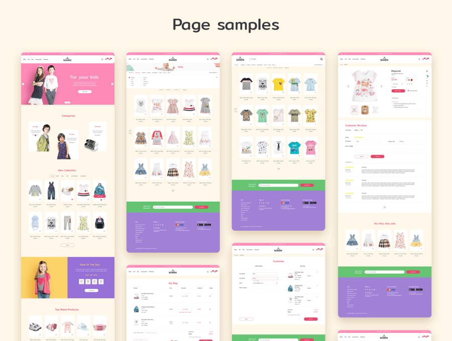 Bambini是儿童和青少年服装店的模板。存档包含100个UI元素和10个页面样本。 Bambini与Photoshop和Sketch兼容。