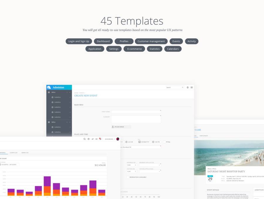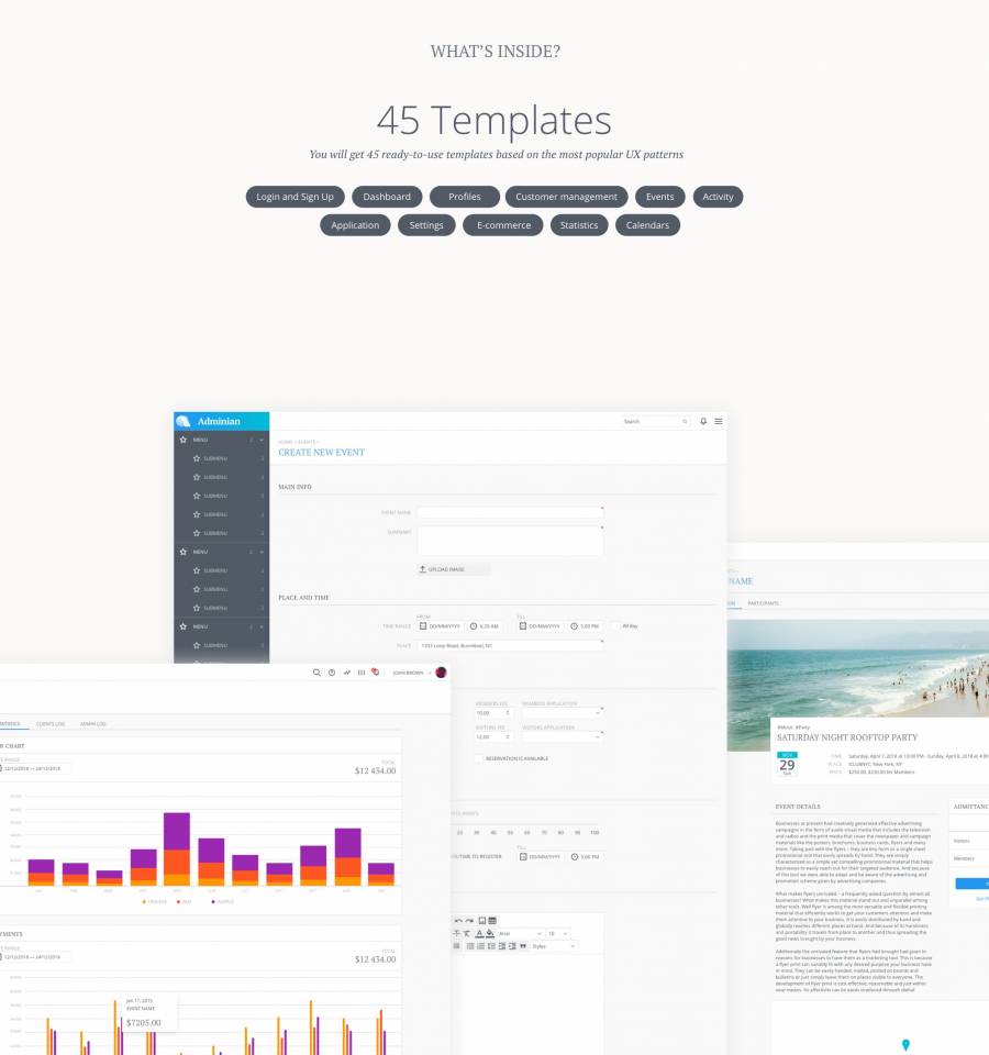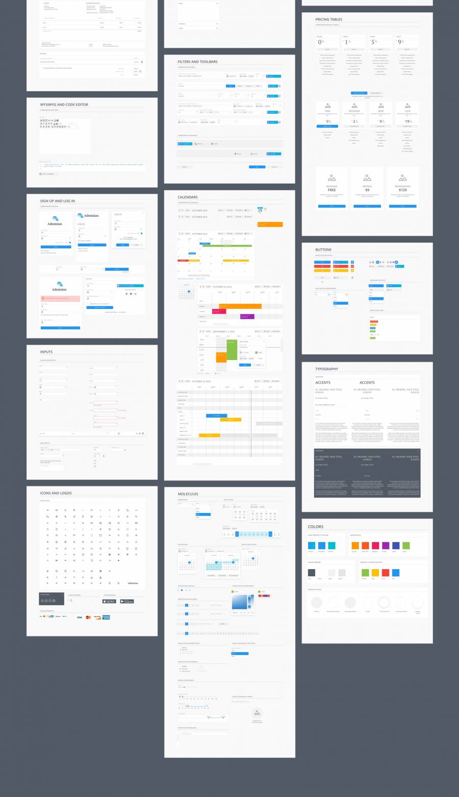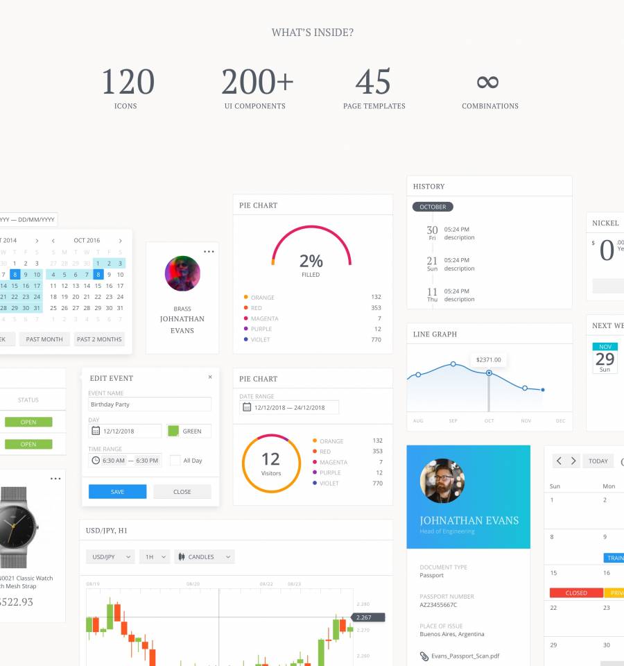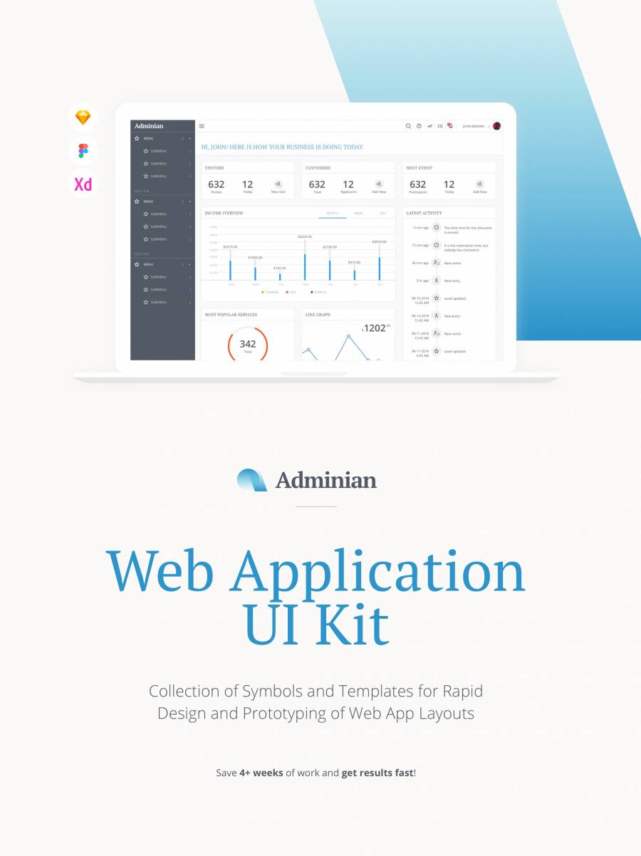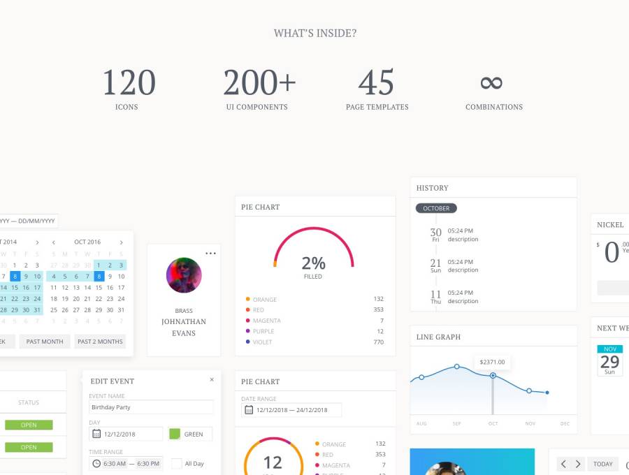 用于快速设计和Web应用程序布局原型的符号和模板的集合。 200多个UI组件,45个页面模板和120个图标。节省4周以上的工作并快速获得结果!