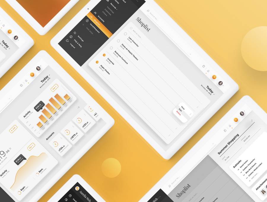 适用于Sketch,Photoshop和XD,Aurelia Web UI Kit的优雅仪表板Web App UI工具包