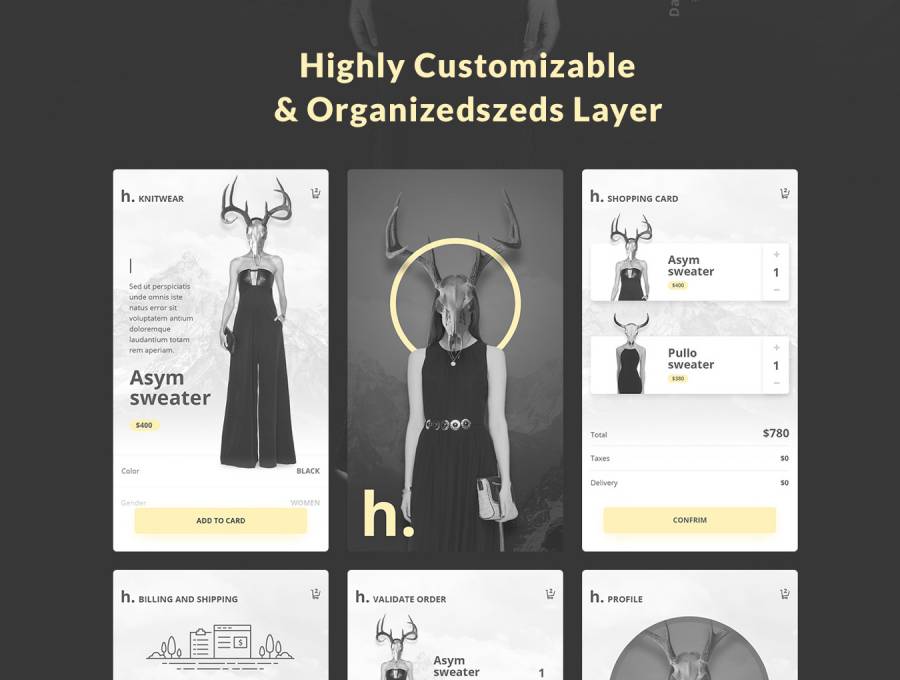 Hobi是一款优雅的电子商务Sketch,XD和PSD UI设置,具有独特的现代外观和感觉。它包含14个屏幕,组织良好的PSD文件,可以轻松实现,以适应任何类型的移动电子商务商业网站,包括在线时尚,服装等等。