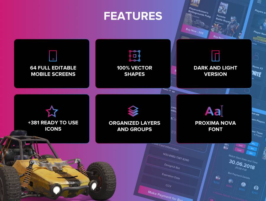 EsportsBet UI套件包括64个iOS屏幕,专为您最喜爱的运动投注而设计!和你的朋友一起投注这个基于矢量的移动应用程序设计!作为特殊奖励,还有一个附带的图标集,以及与UI兼容的此UI工具包的深色和白色版本。