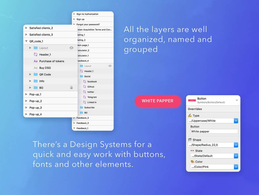 Meccano是一款时尚,优雅,色彩缤纷的单元套件,包含25个以上元素,60多个基本块和2个版本的着陆页样本,在Sketch中创建了2个版本。这些块是ICO登陆页面中最常用的块。为方便起见,有一个可用的移动适配模板360x640px。使用宽度为1170px的12 Column Bootstrap网格,我们设计了一个可以帮助您加快建立自己项目的工作和流程的设计。此外,还有一个设计系统,可以快速轻松地使用按钮,字体和其他元素。所有图层都组织良好,命名和分组。请将您需要的所有块作为构造函数,以获得生产就绪的独特产品。曾经或将要处理这一主题的每个人都应该拥有私人收藏中的这样一个好工具。