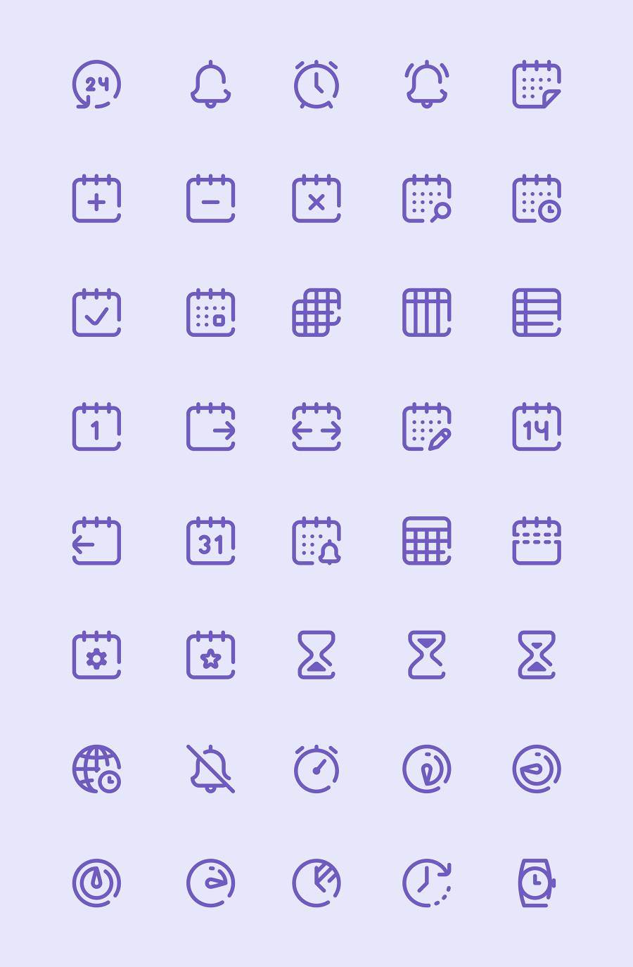 40 枚日历和日期元素图标