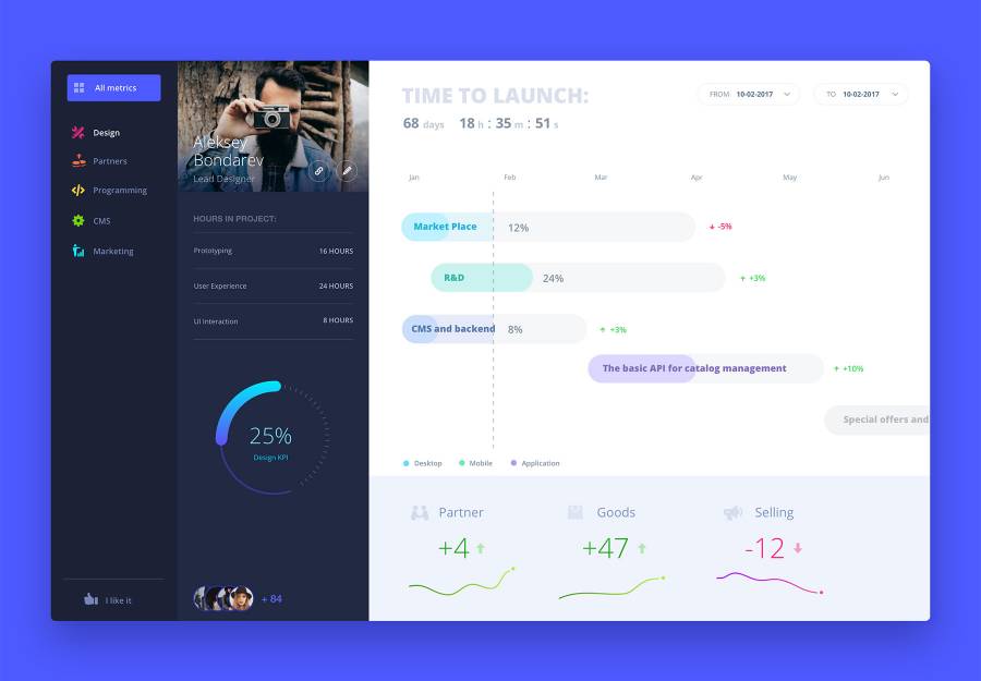 暗蓝色进度仪表板