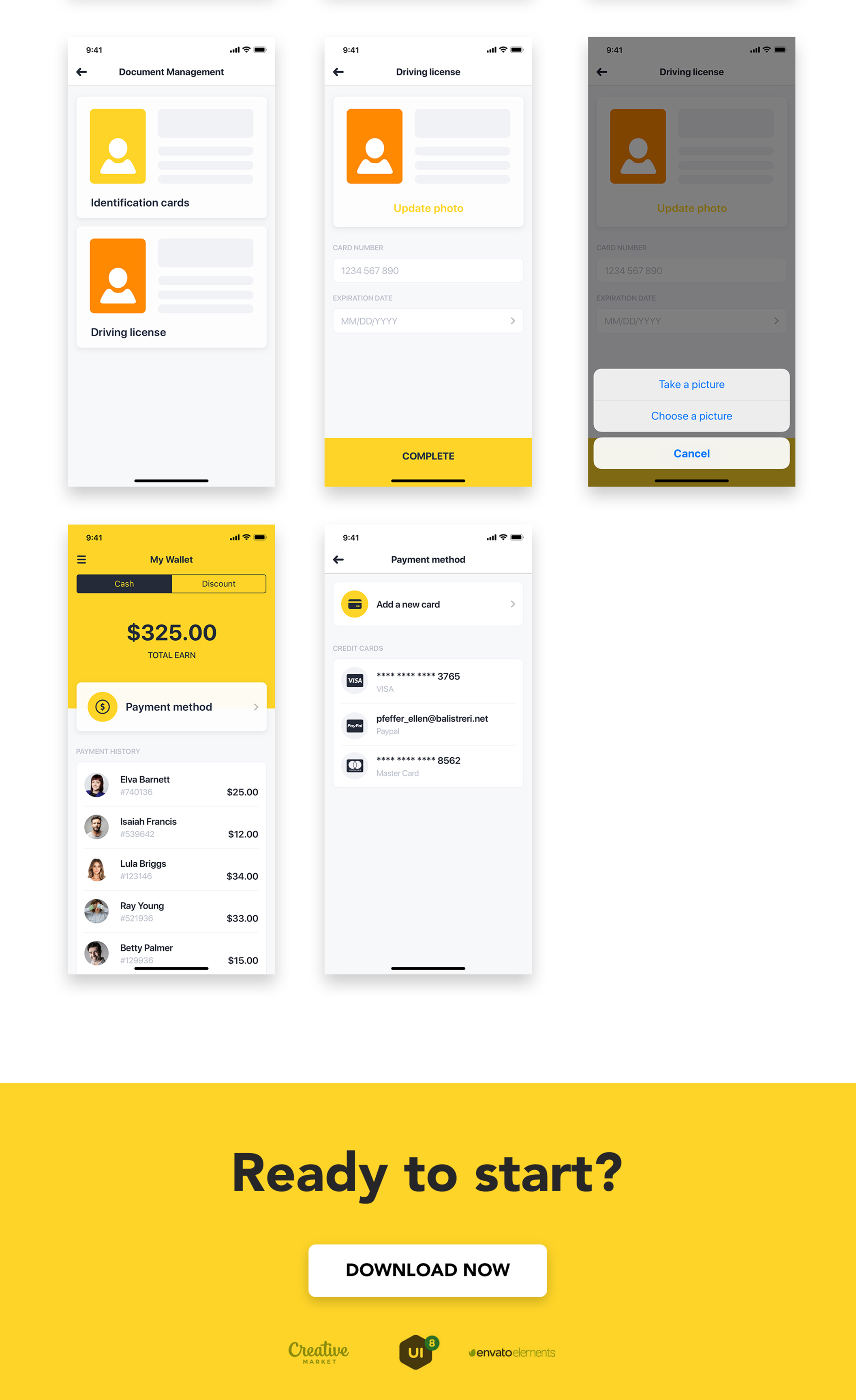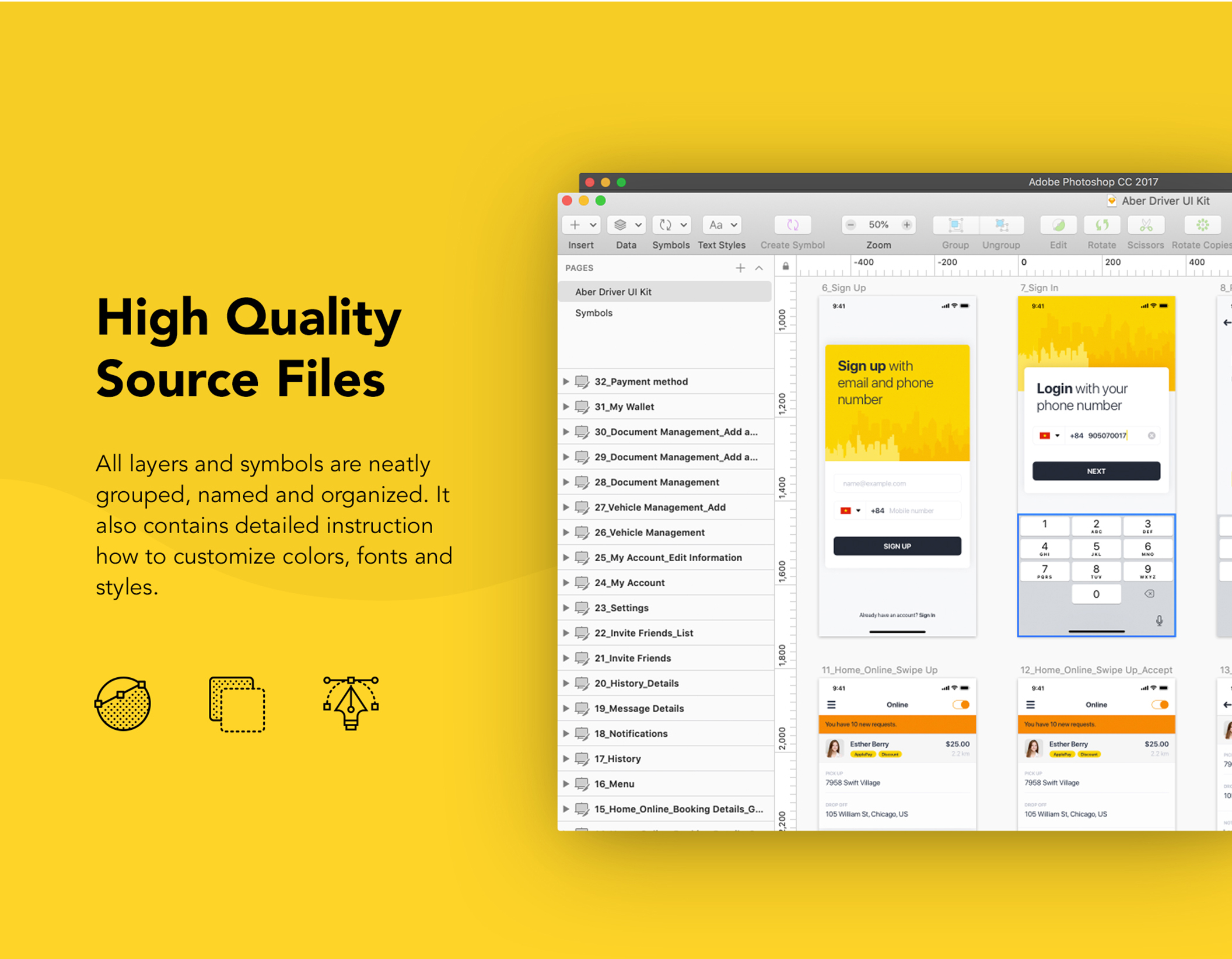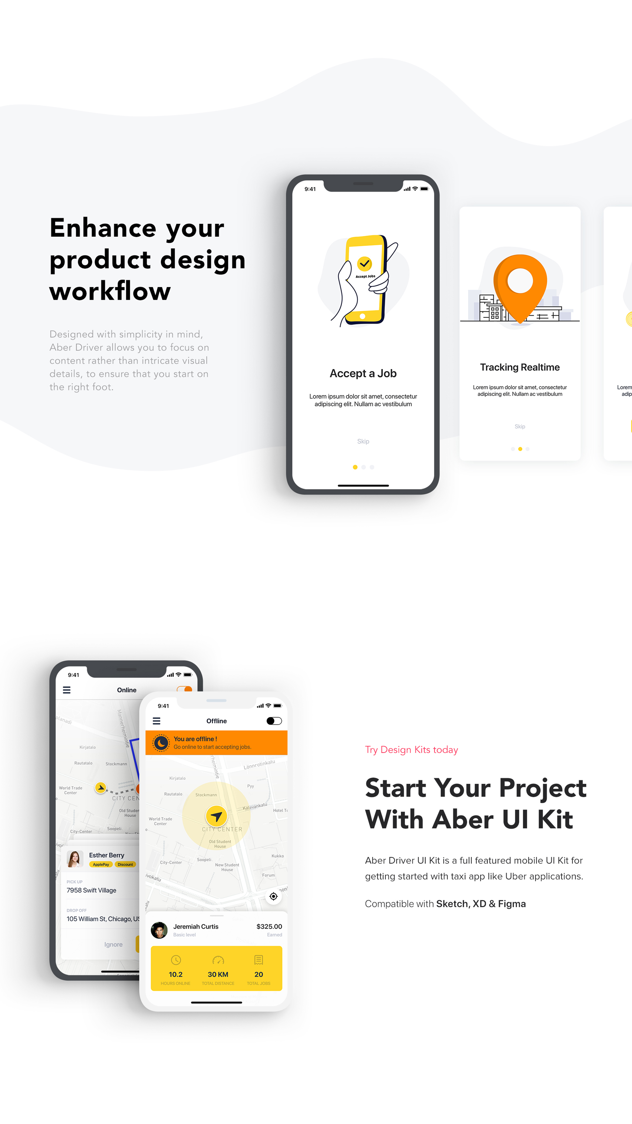 Aber Driver UI Kit是一款高品质的包,专为基于Uber,Grab和Go-Jek应用的Taxi项目而设计。该软件包包含大量有用的元素和组件,用于创建移动应用程序。它还包括32个现成的iOS屏幕,使您的设计流程简单。兼容Sketch&Figma。