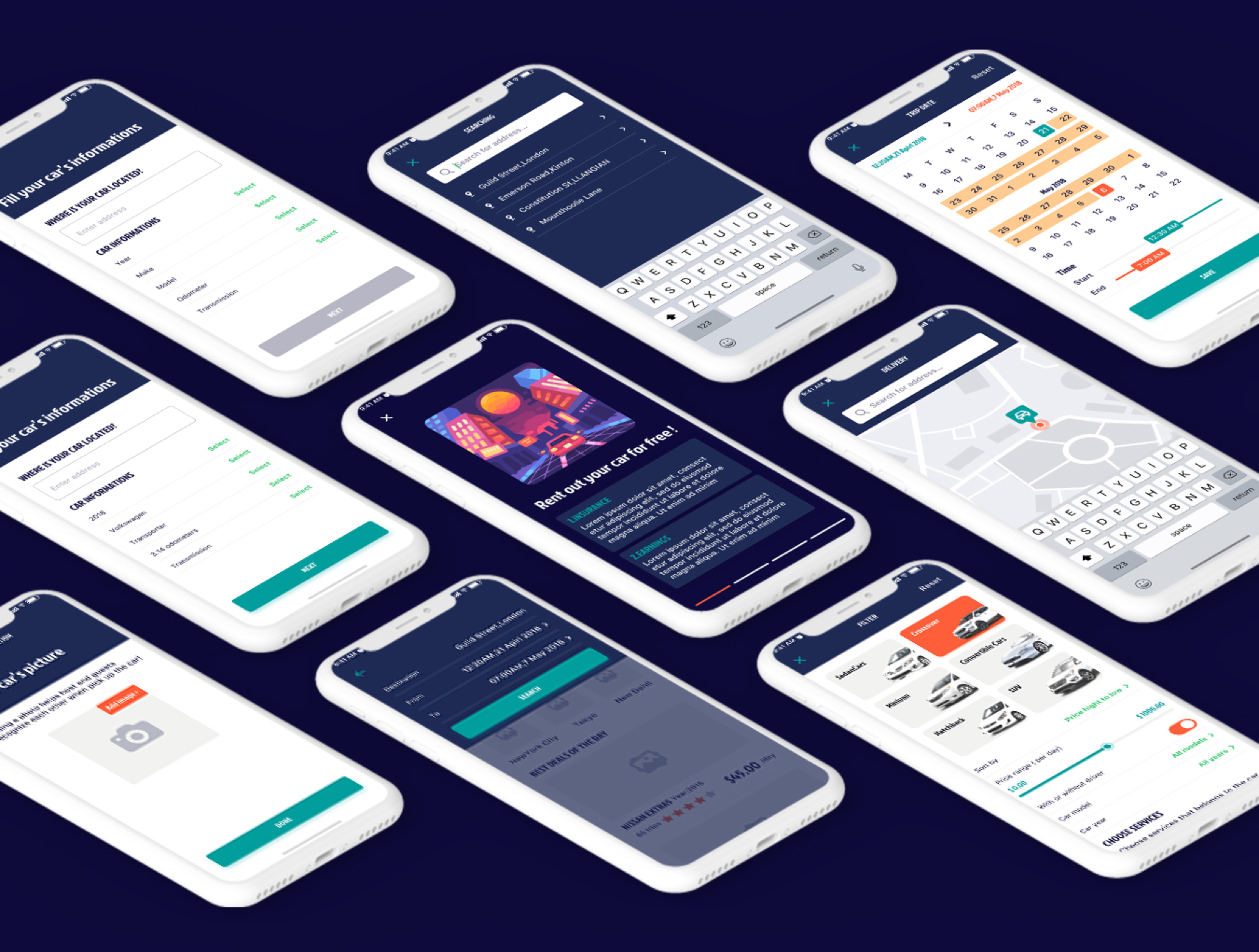 为Sketch,Rocky App UI Kit租用车载移动应用程序UI工具包