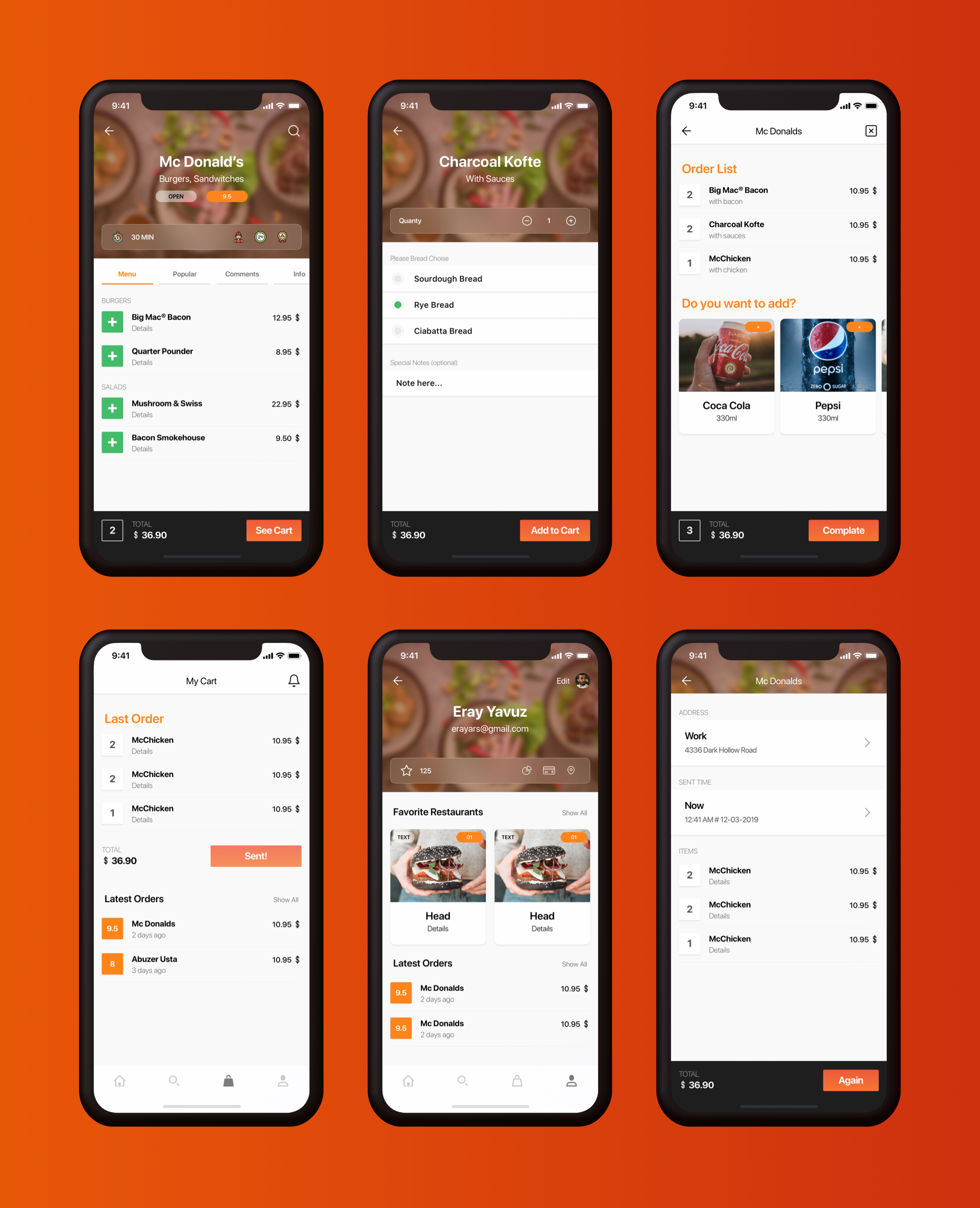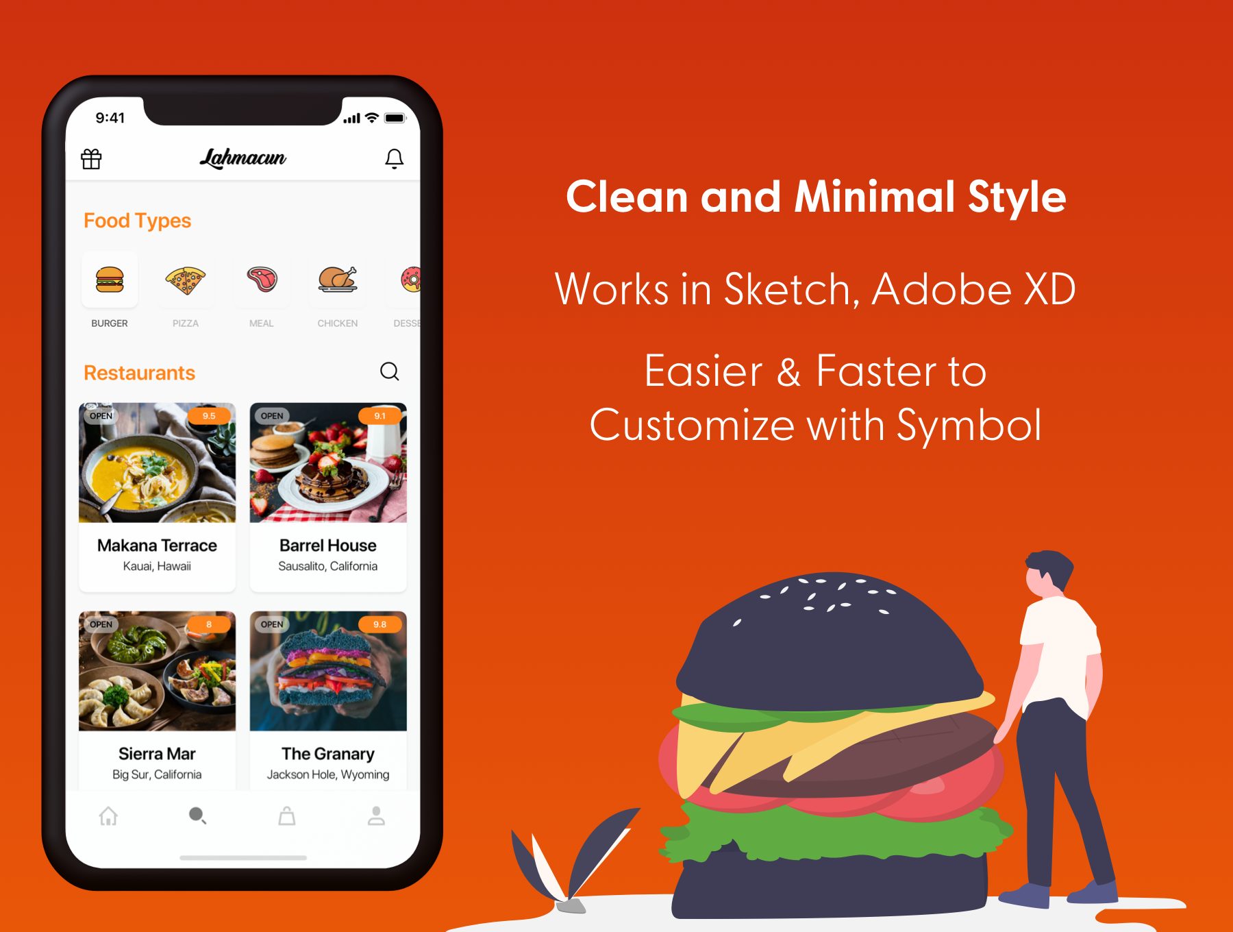 用于Sketch的Food Delivery Mobile UI UI工具包,Adobe XD。,Lahmacun - Food Delivery Mobile App UI Kit