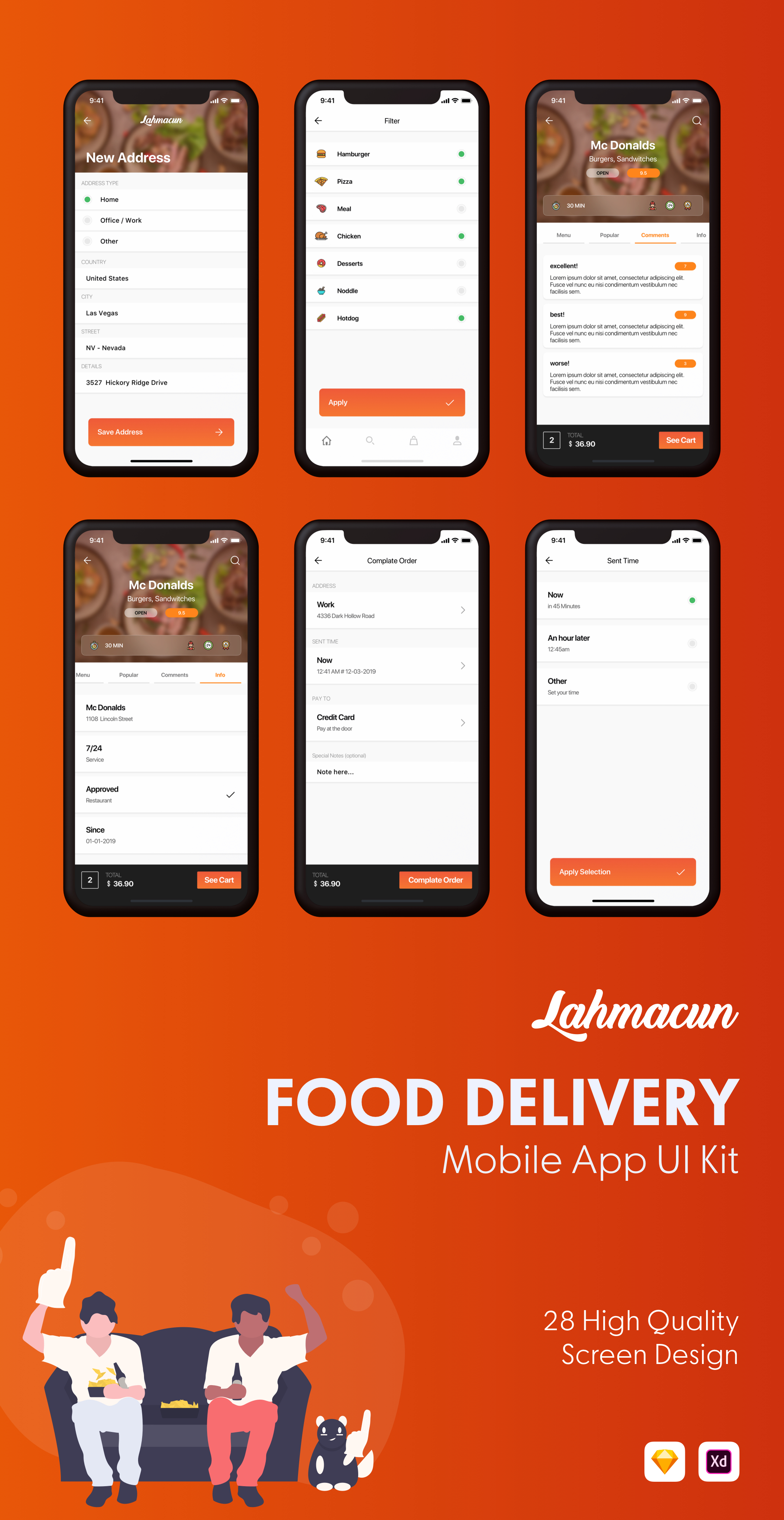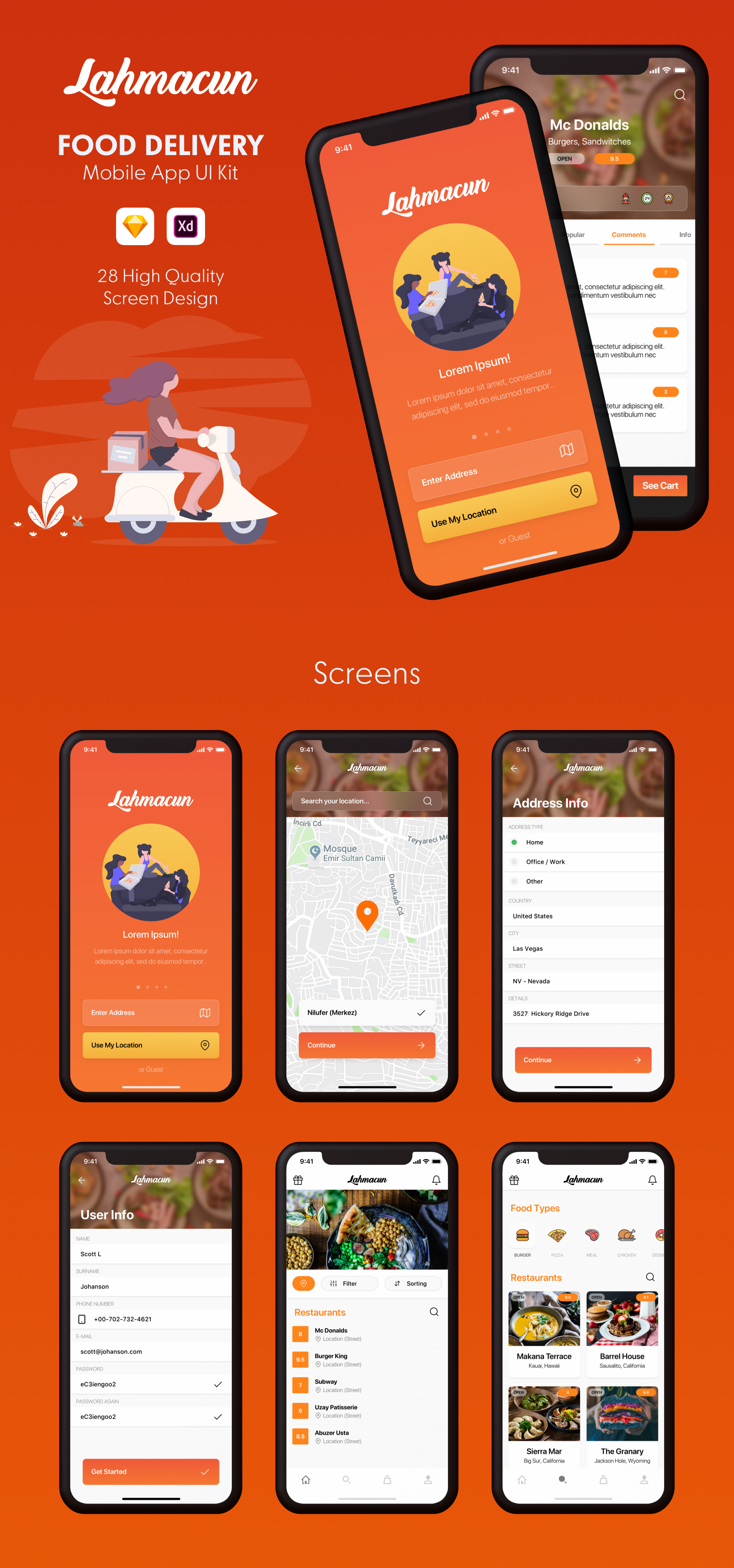 Lahmacun - Food Delivery Mobile App UI Kit是使用Sketch App和Adobe XD for iOS设计的。
