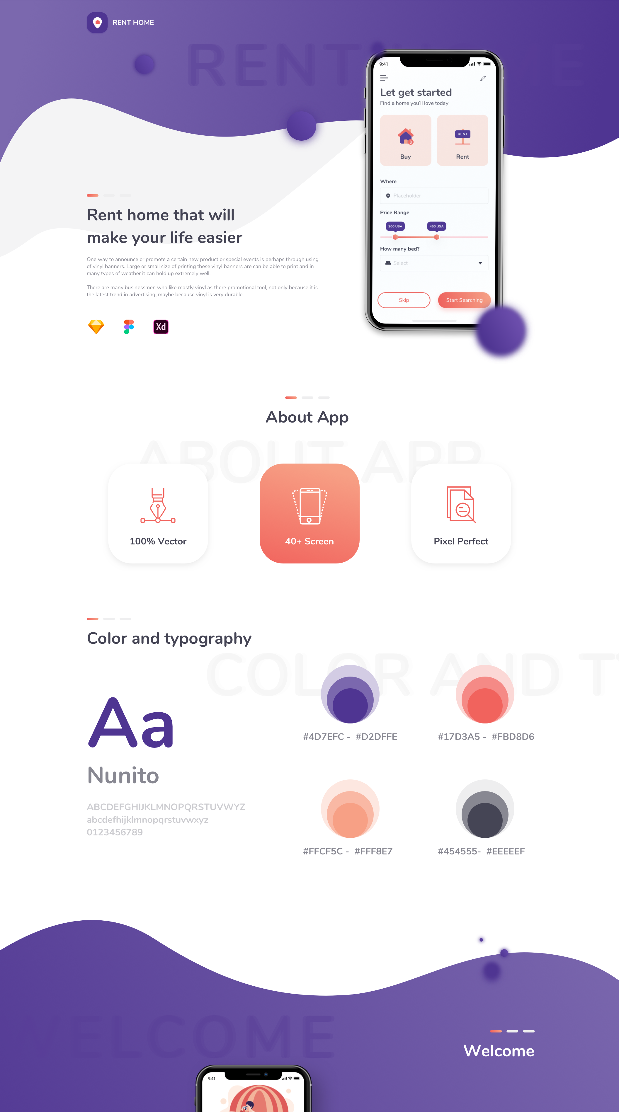 Rent home UI KIT is a solution that connects home buyers and sellers, helping buyers find housing information anywhere in the world. Smart search engine, friendly interface vs users, The application has more than 40+ screens, 200+ elements. Using basic 100% vector application makes it easy to change the design on Sketch, XD, Figma.