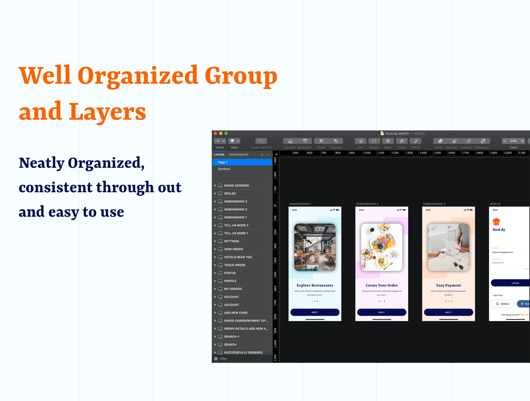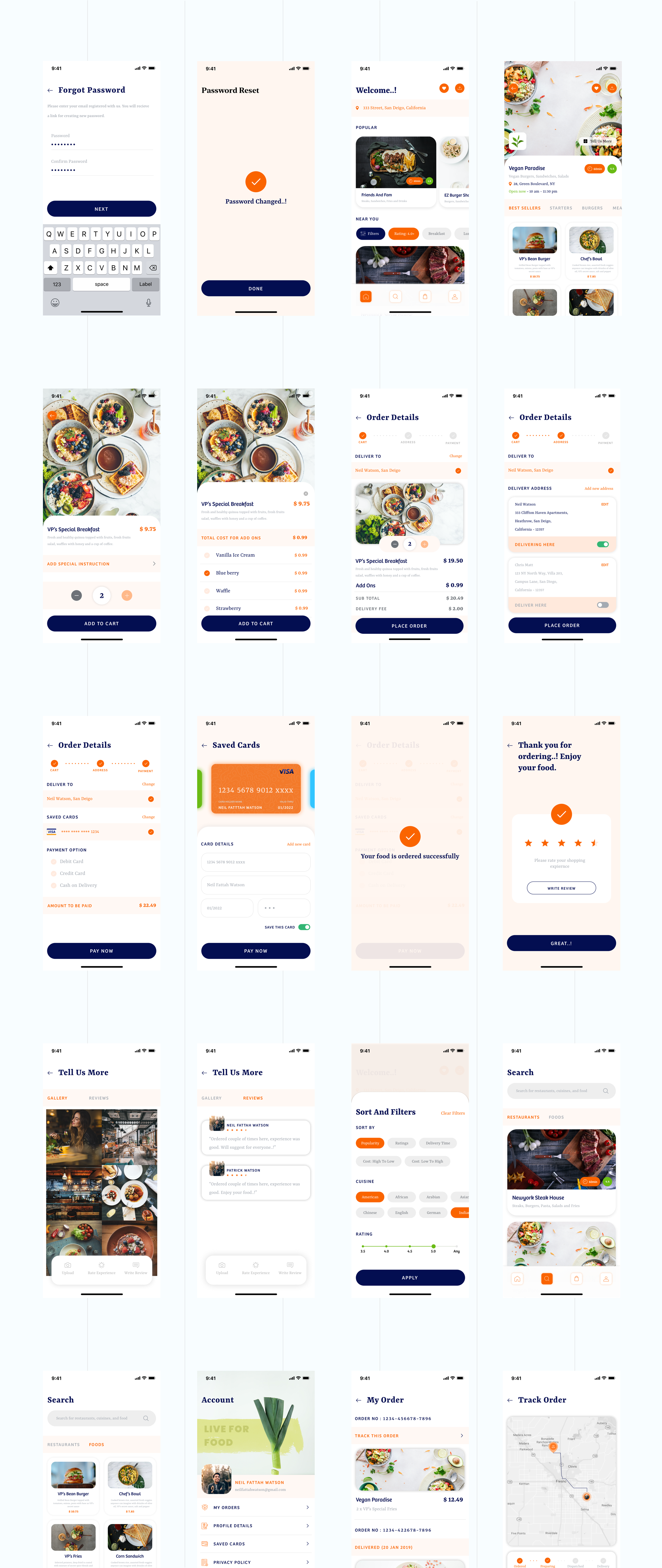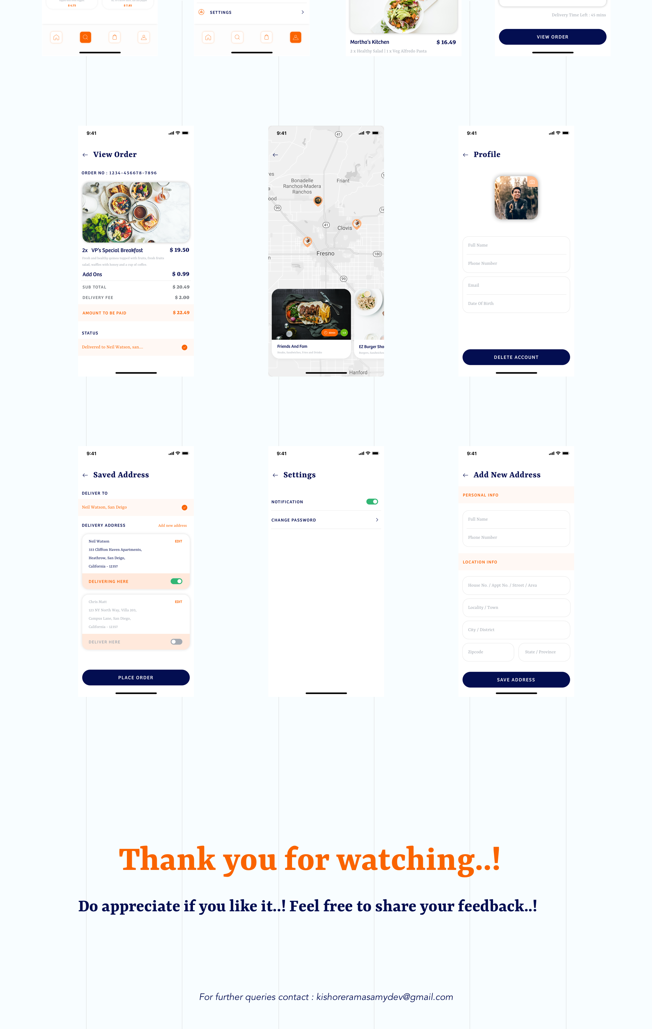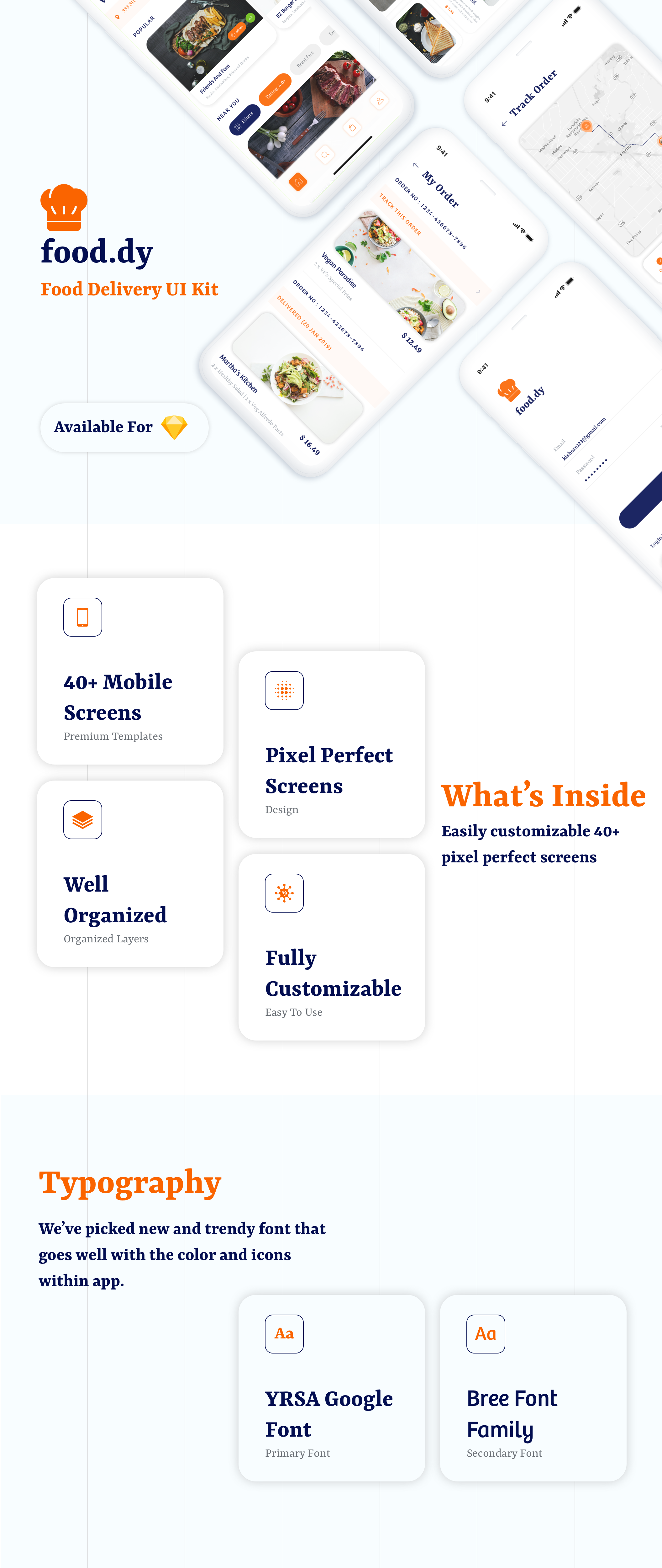Food.dy交付应用程序iOS UI套件包括40多个预先制作但完全可定制的屏幕。 只需修改文本和颜色样式并添加您自己的内容,您可以轻松地制作此套件。 它有一个简单的设置和餐厅业务所需的许多功能。