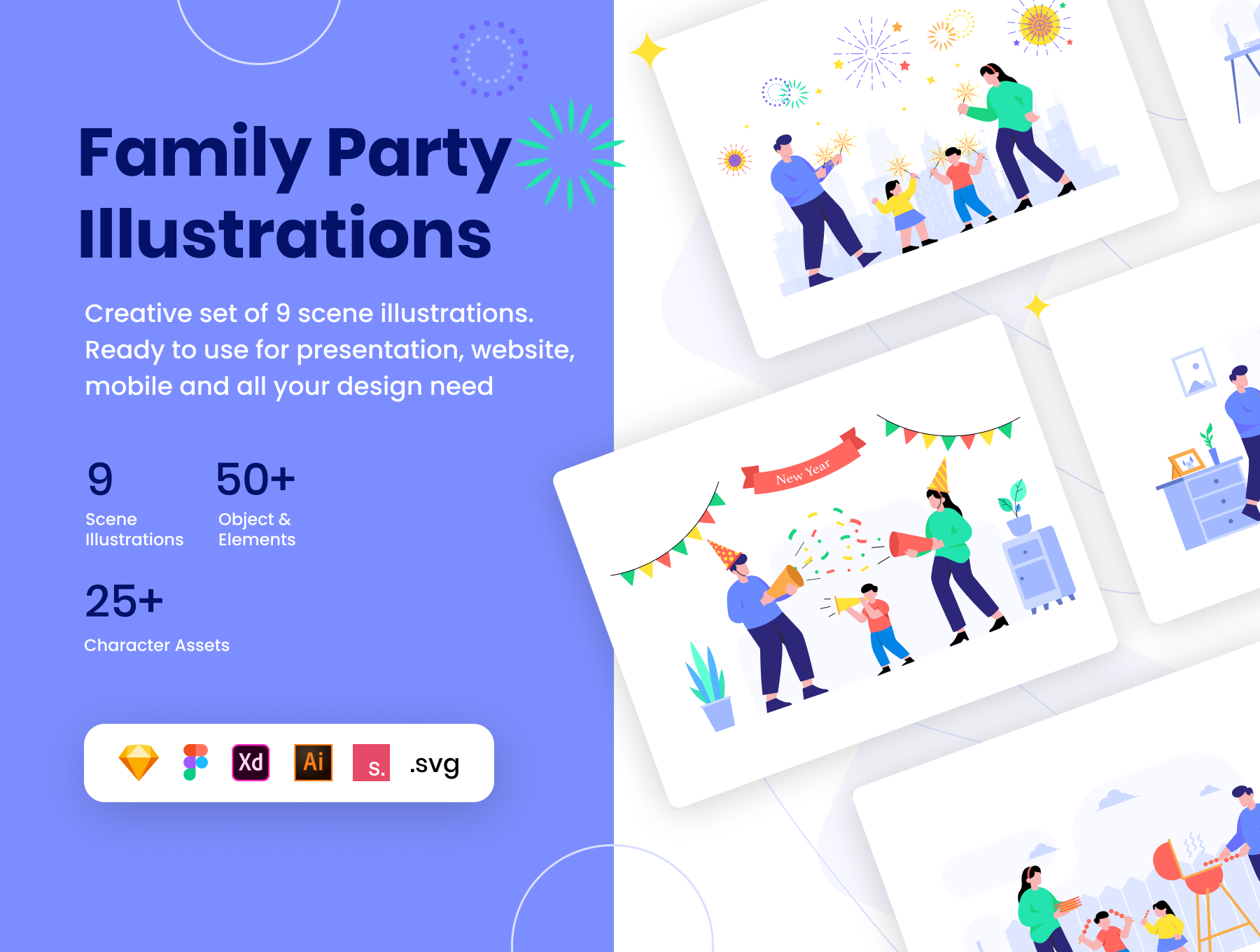 家庭派对插图套件,家庭派对插图套件