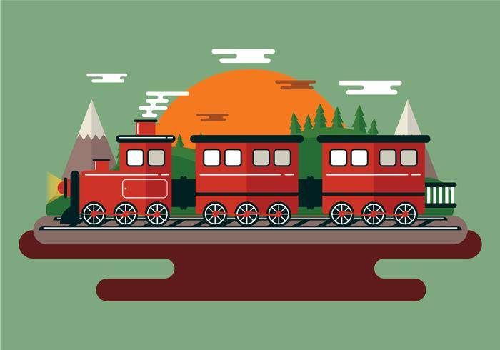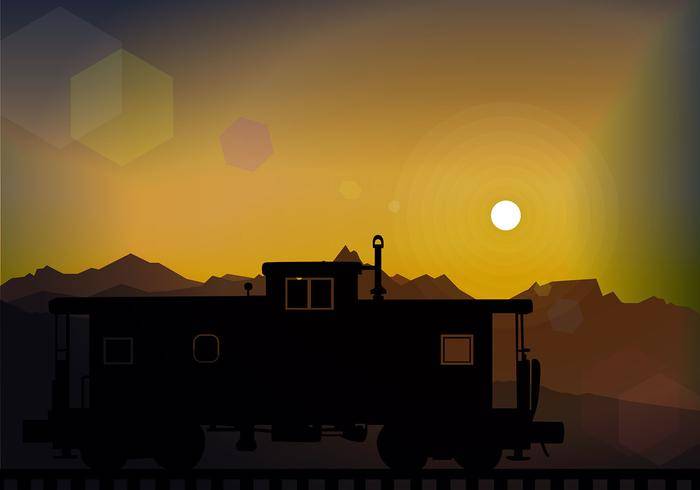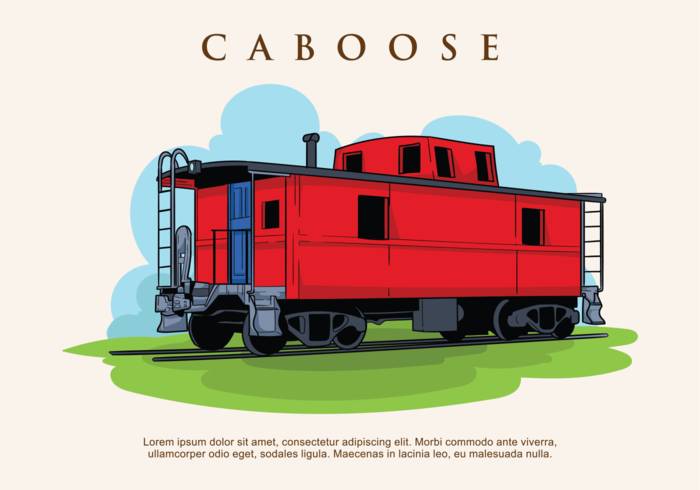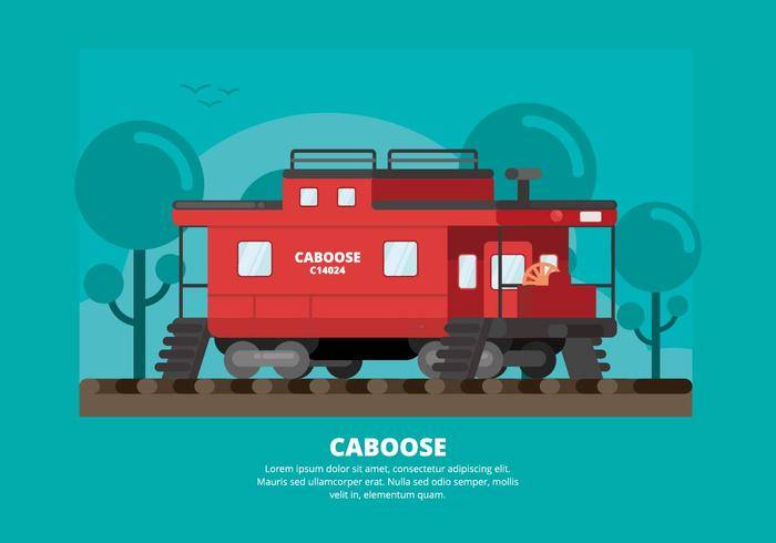 红色的Caboose餐厅户外与自然景观矢量平面插图