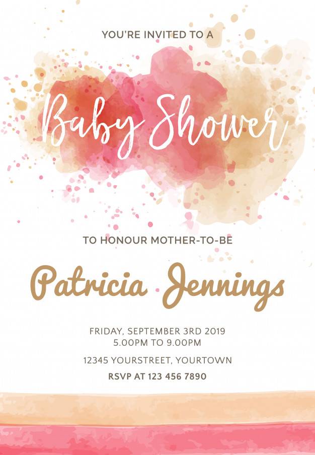 华丽的水彩婴儿送礼会请柬