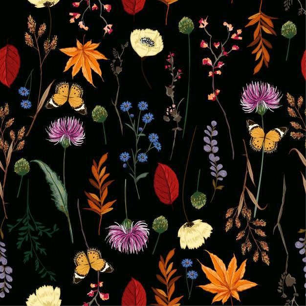 可爱的小鸟在色彩鲜艳的秋叶无缝模式