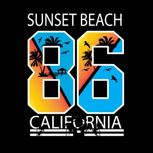 T恤杉和其他用途的加利福尼亚日落海滩印刷术