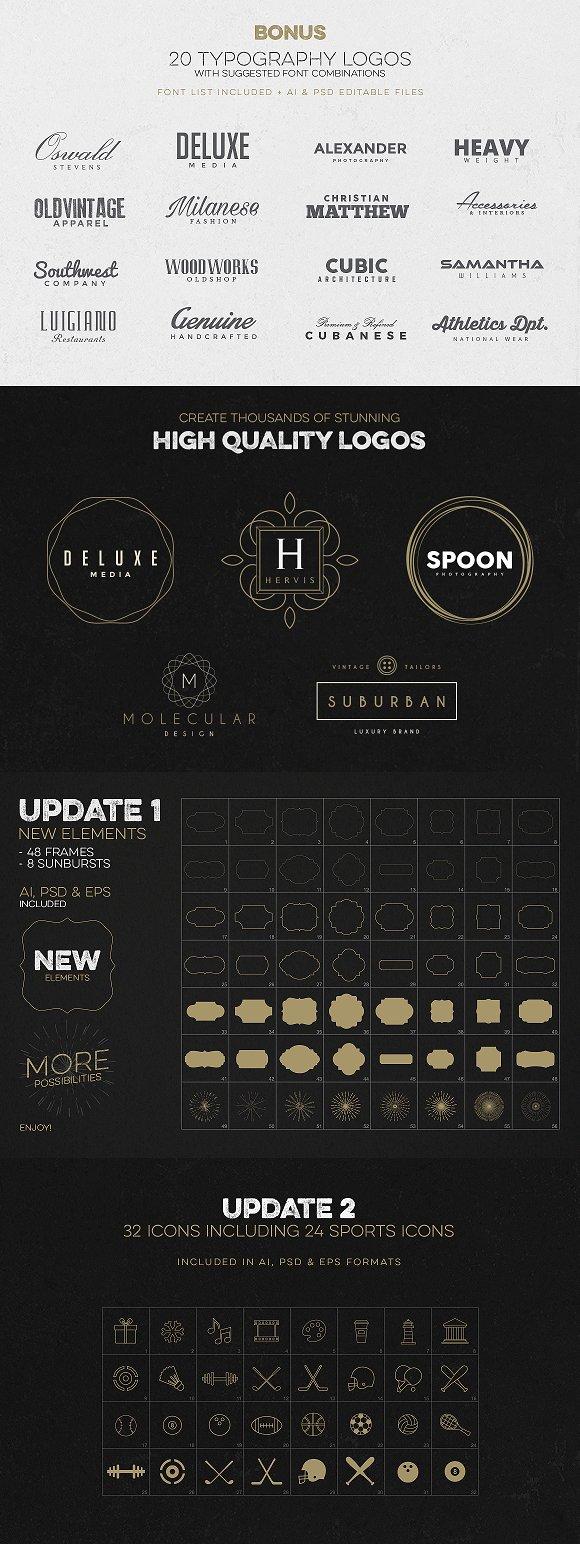 资源大小1.69GB,包含7个令人敬畏的Logo Creation Kits的;1700+元素和图形;1300个标志模板;超过30种不同的套装;350惊人的高分辨率金子质感和金属纹理素材。希望大家喜欢~享用吧~ (Logo Creators Megabundle)