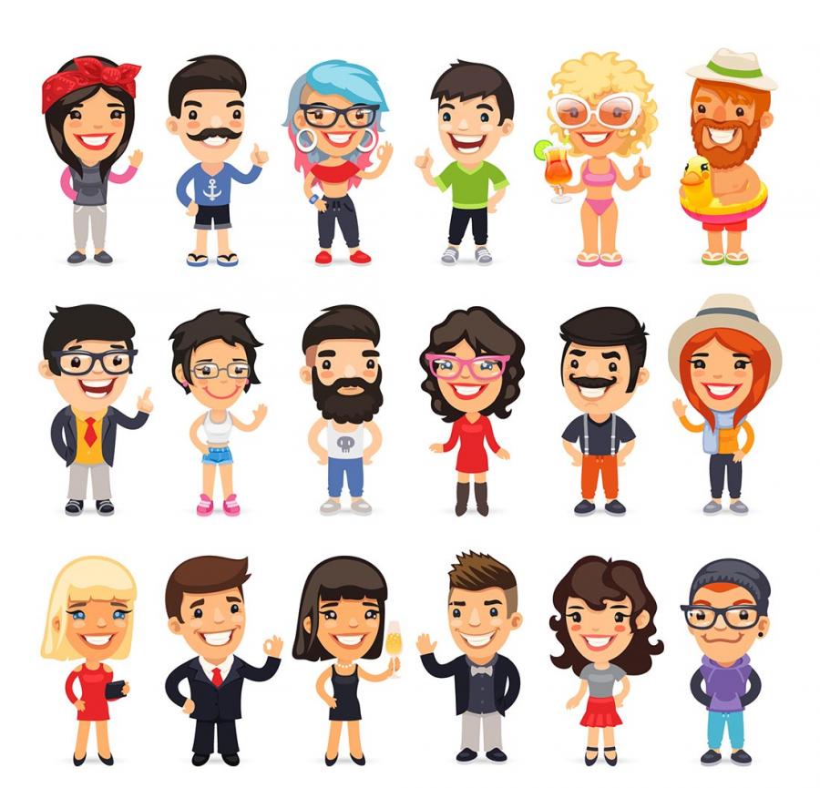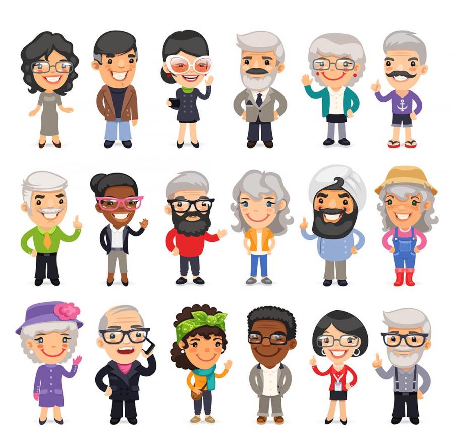 100个卡通世界人物小孩老人全家福职业角色形象扁平化ui设计矢量素材