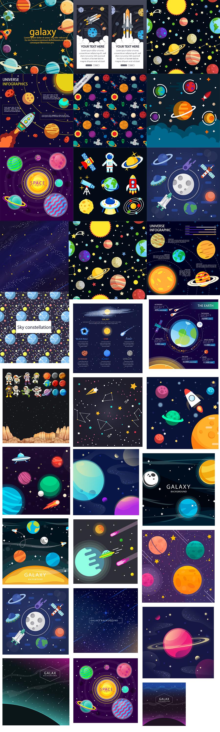 28款卡通太空宇宙星球矢量插画素材打包下载