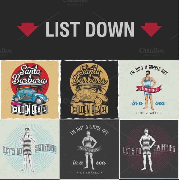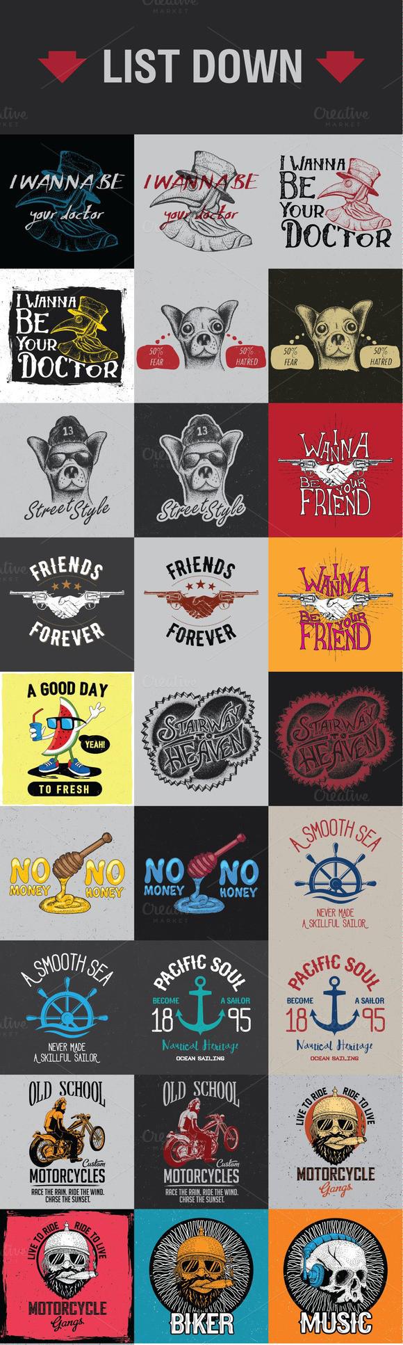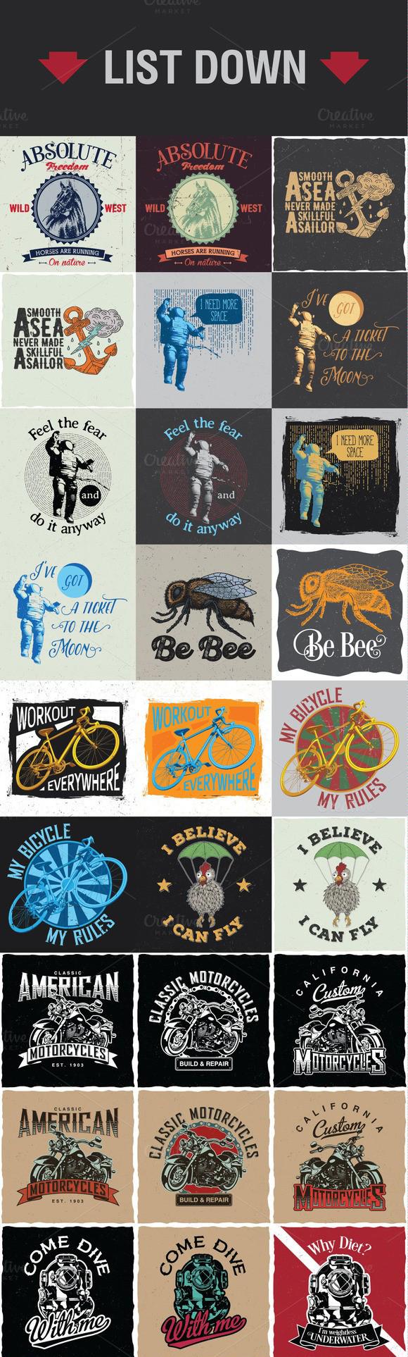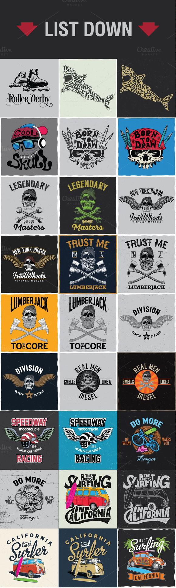 53套欧美复古徽章LOGO标志图案适用于T恤制作(T-shirt design )矢量素材打包下载
