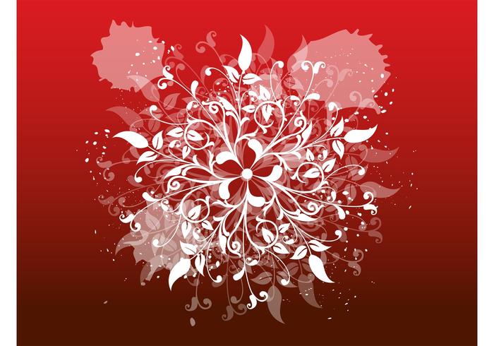花卉装饰矢量设计与飞溅模式。花与长旋转茎和许多叶子图标,同一朵花的透明版本和与滴和油漆斑点的grunge模式。免费矢量插画的所有性质,植物,花卉,花卉,涂鸦,街头艺术或grunge设计项目。