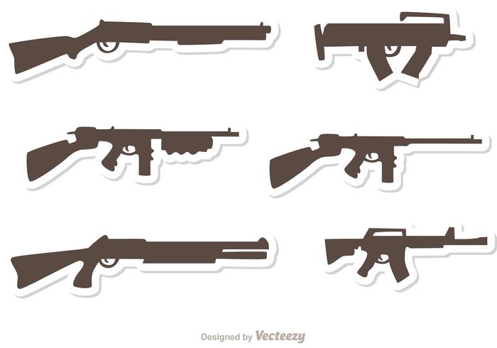 枪的形状矢量集合图标孤立在白色背景上的黑色剪影矢量图。
