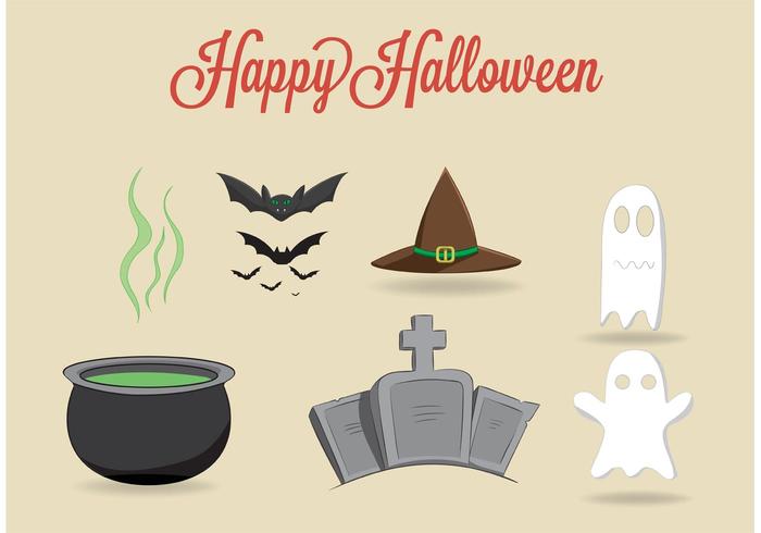 万圣节矢量元素和符号 - 巫婆的帽子,蝙蝠,大锅,墓碑和鬼魂。嘘!