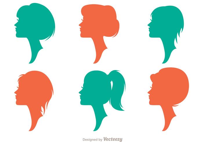 剪影矢量肖像配置文件的一个美丽的女人,有很多不同的发型。您可以将这些女孩矢量剪影用于个人或商业目的。