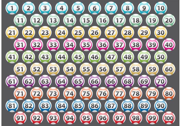 乐透球是用于宾果,乐透和其他游戏,如果你需要一个特殊的设计与这些球下载这个彩色的数字,从1到100集。