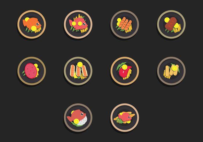 炸鱼食品图标设置与韩国和亚洲食品菜肴。