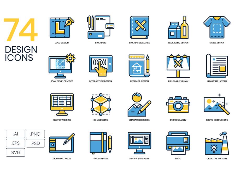74基于矢量的彩色线图标,适用于设计师,代理商,工作室等。,74设计图标