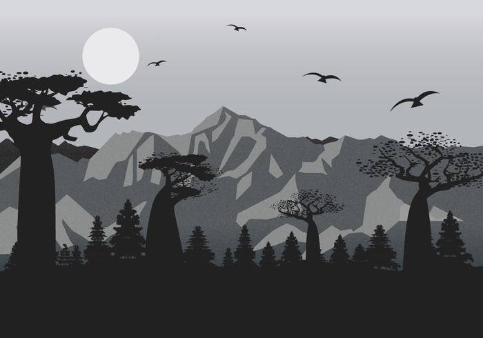 一个美丽的山景在晚上与微妙的电影粮食效应!