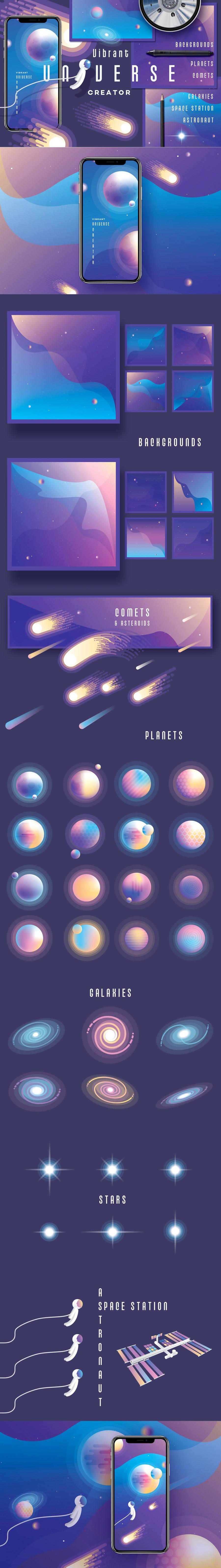 宇宙航空星云银河手绘渐变科技感背景矢量插画AI设计素材