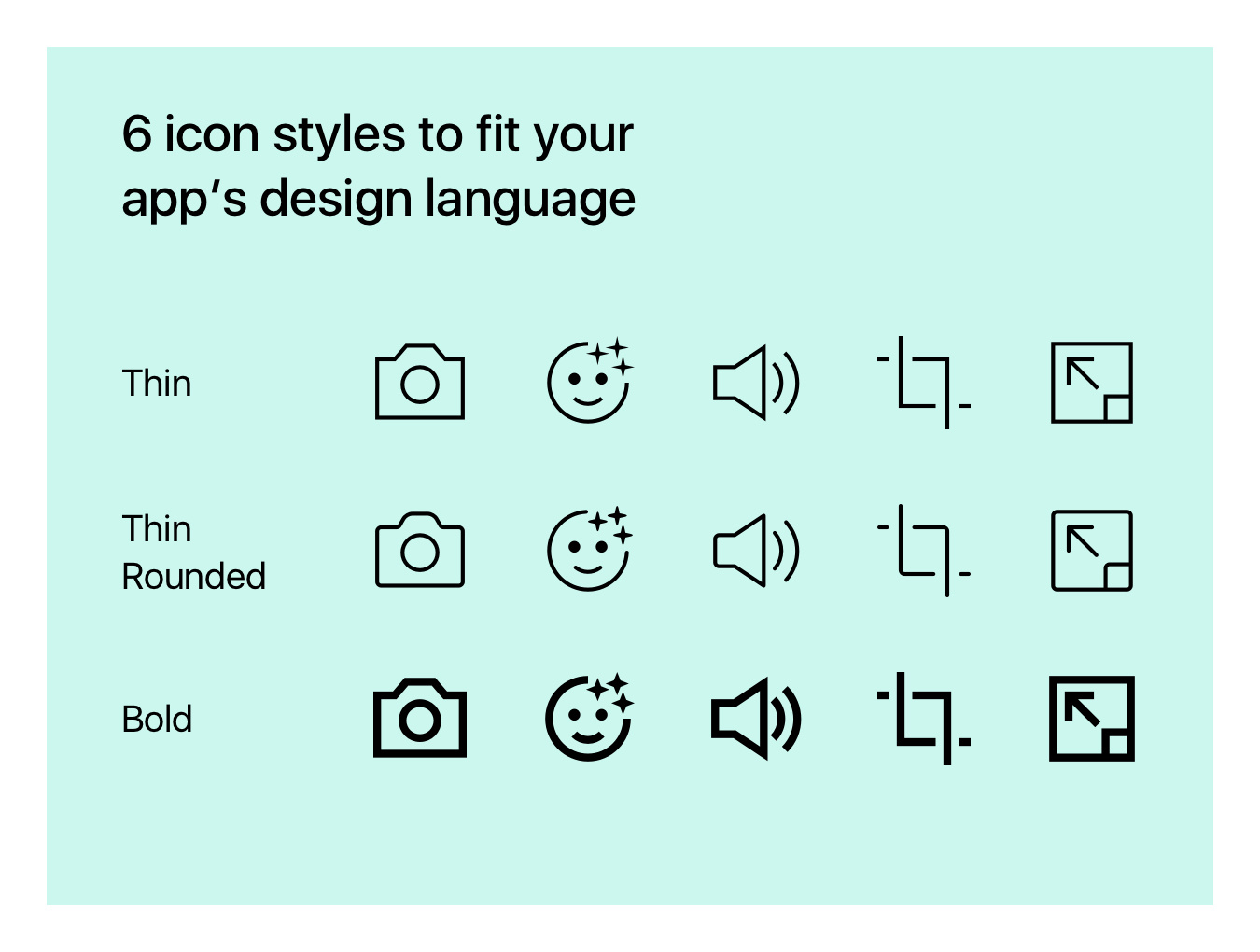 185清洁6种样式的图标,用于照片和视频编辑器UI及更多!,手册