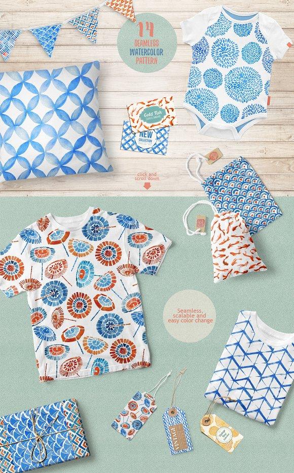 16款蓝色日式水彩纹理背景图案EPS矢量素材