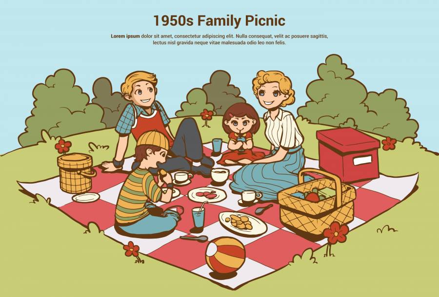20世纪50年代家庭野餐矢量。成千上万的免费矢量图,剪贴画设计,图标和插图由全球艺术家创作!