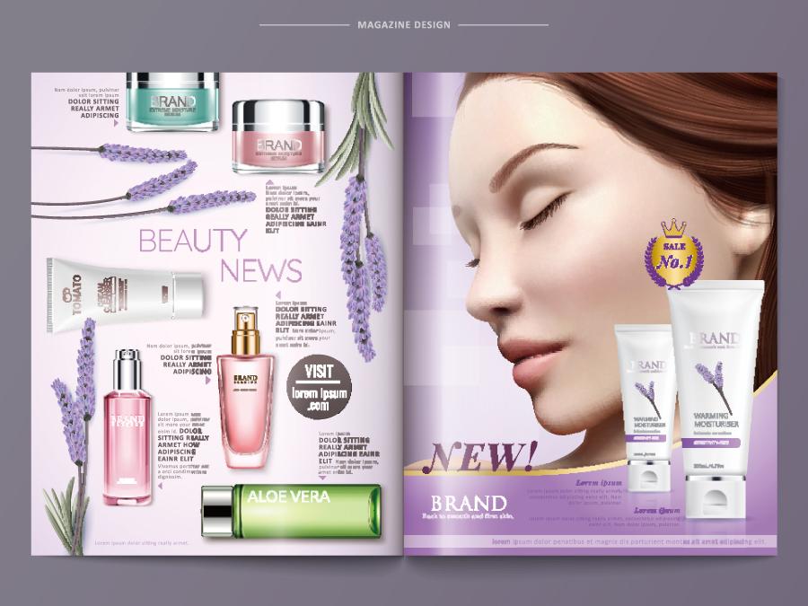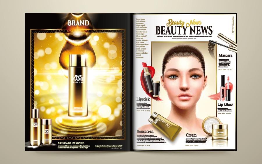 10款化妆品护肤品画册美容杂志产品手册排版EPS矢量设计模板素材