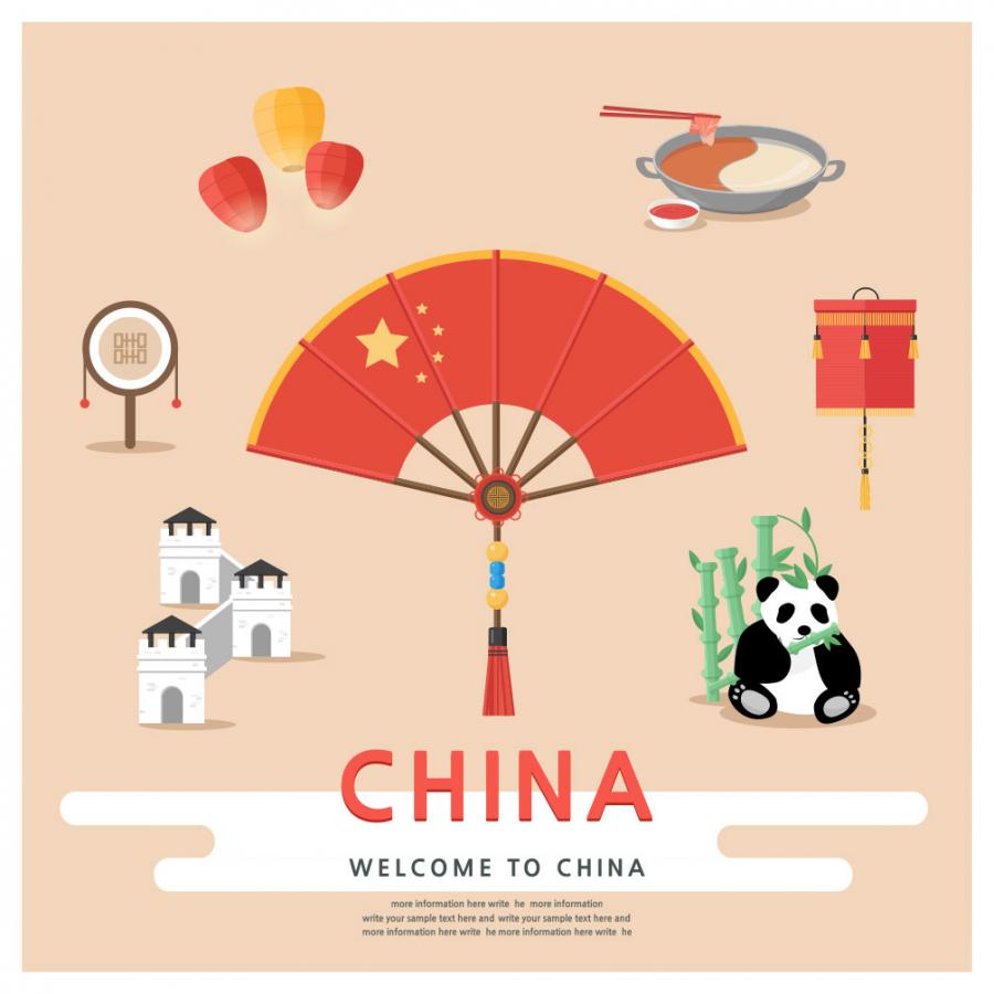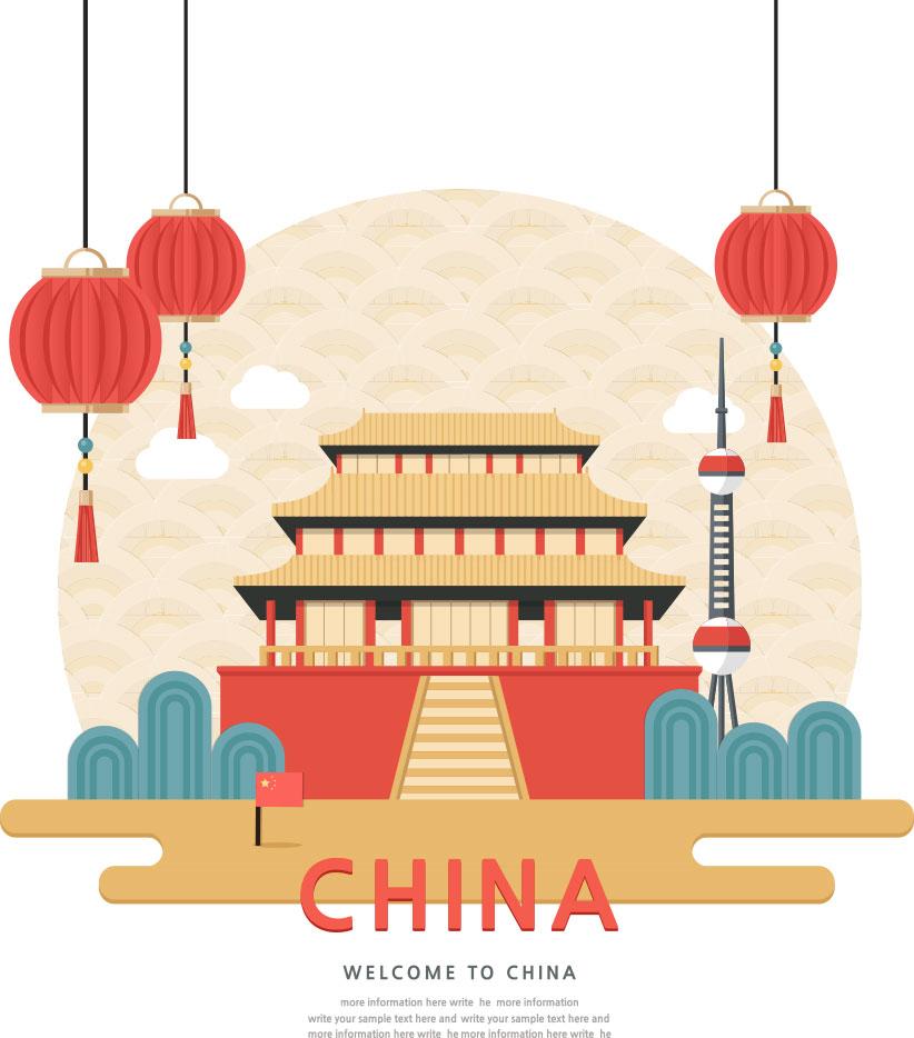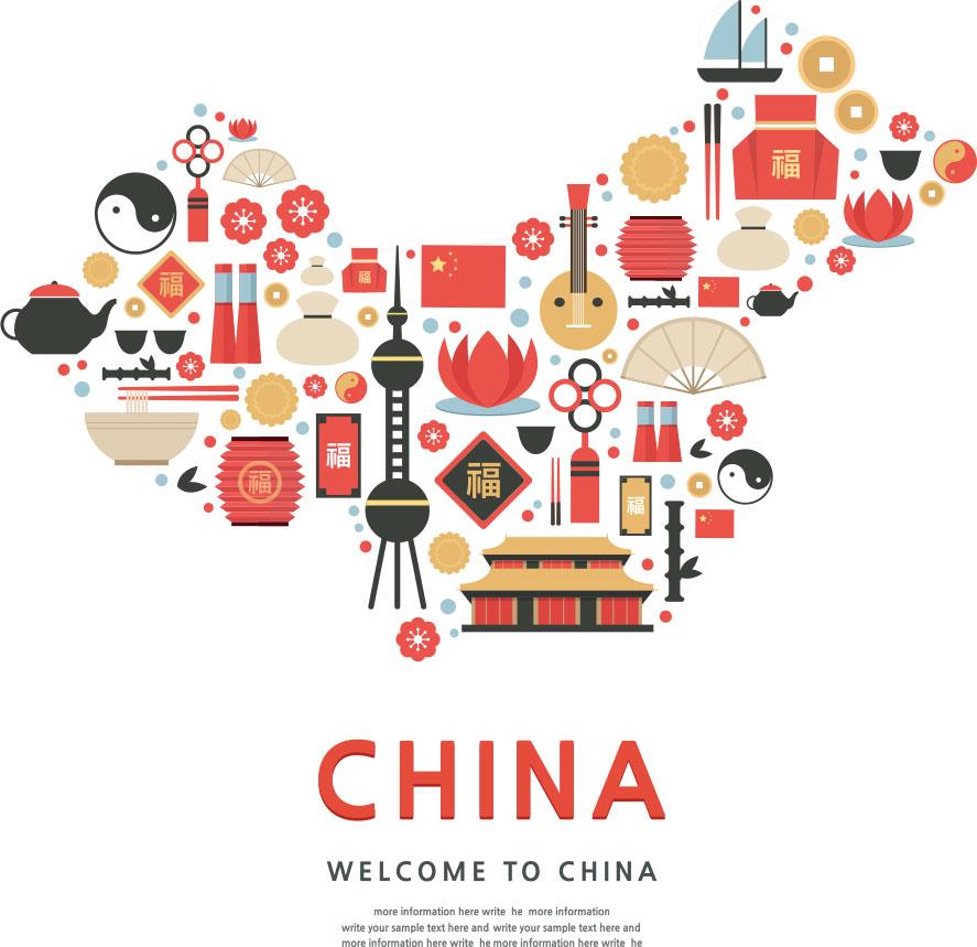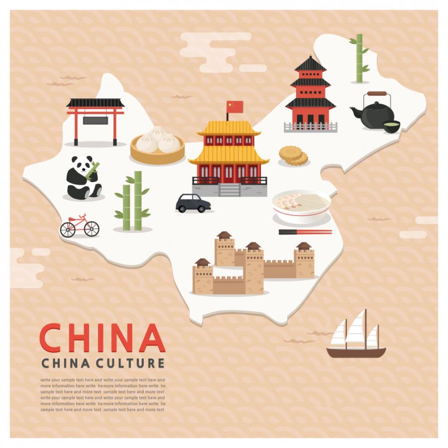 11款旅游中国特色风味古建筑美食文化元素插画地图矢量设计素材