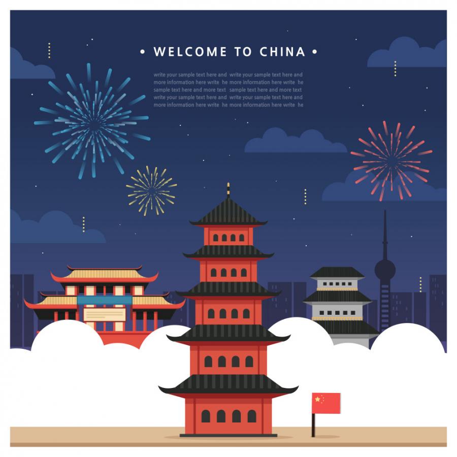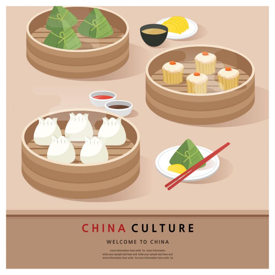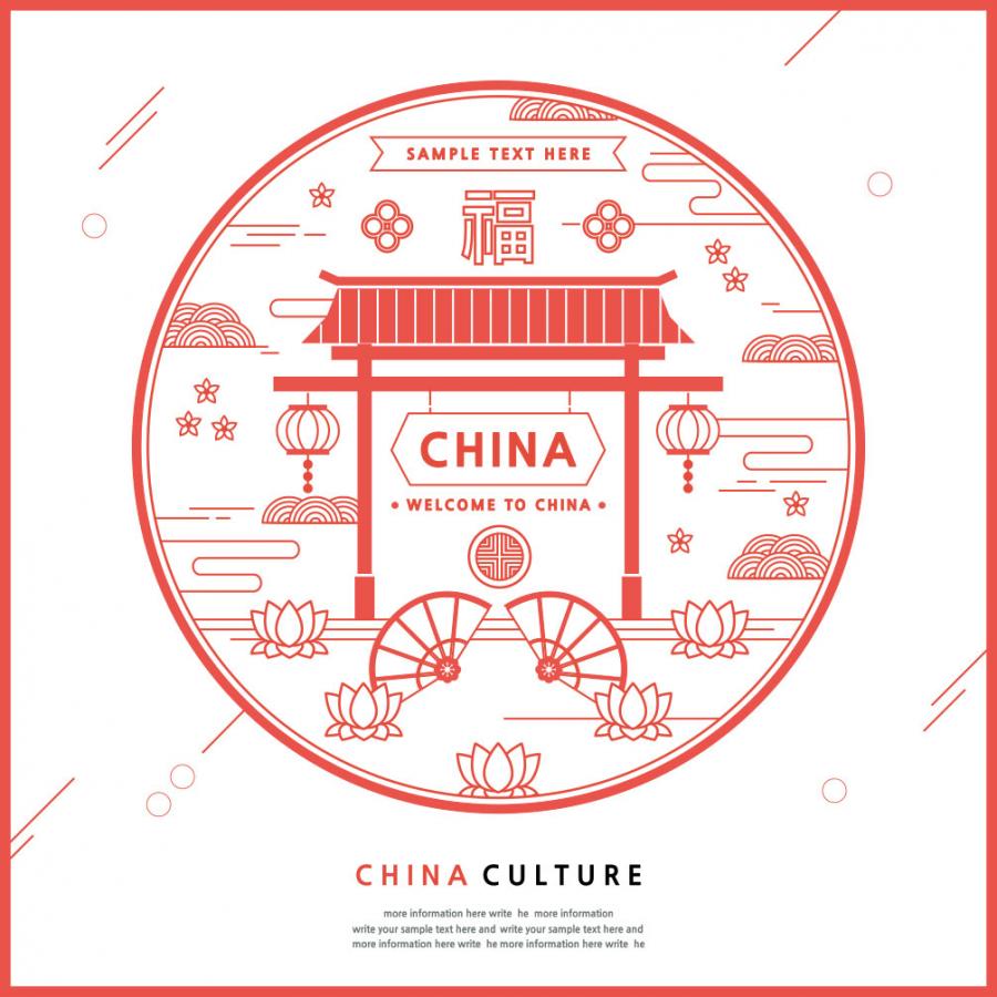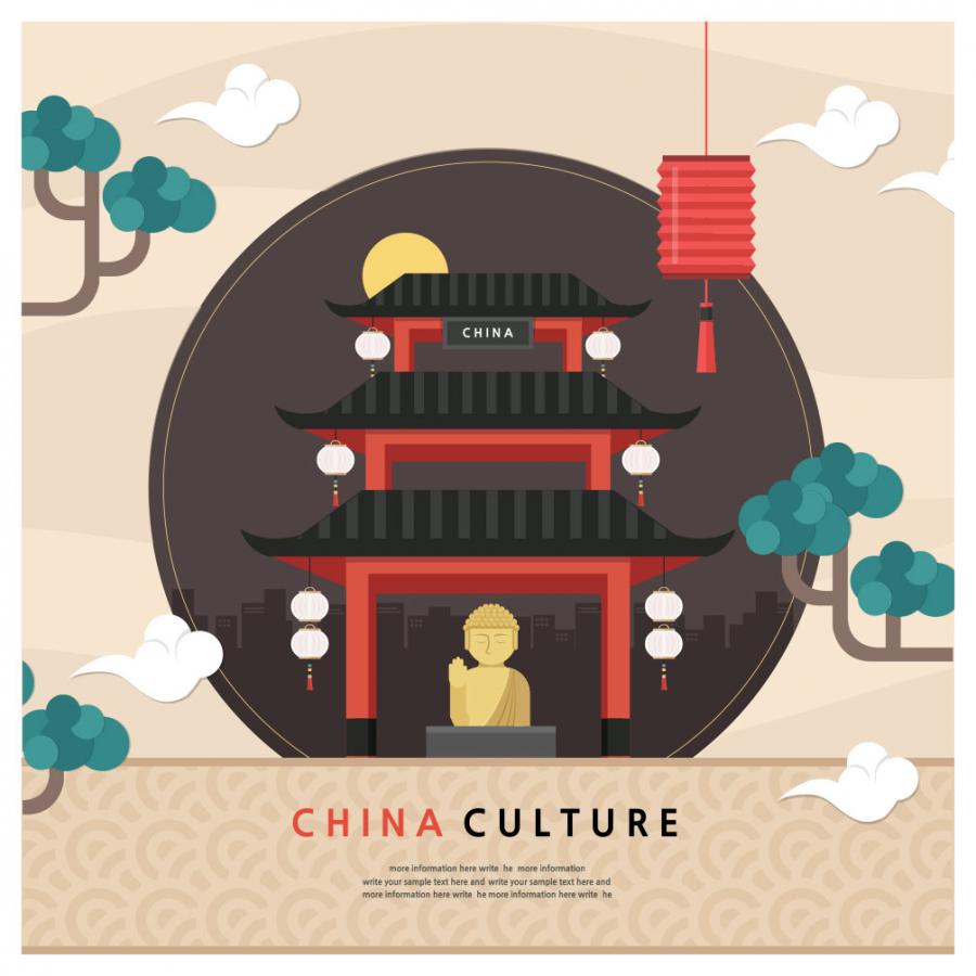 11款旅游中国特色风味古建筑美食文化元素插画地图矢量设计素材