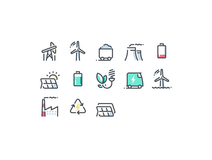 28 Photoshop&Illustrator能源相关的矢量图标。,能源