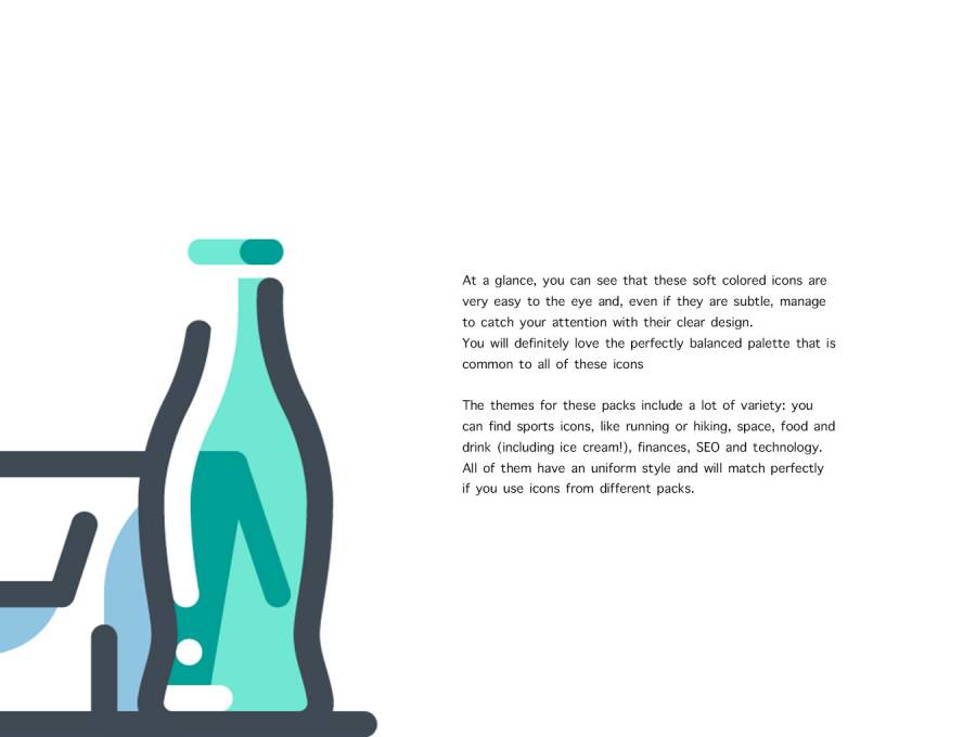 乍看之下,您可以看到这些柔和的彩色图标非常容易引人注目,即使它们很微妙,也能通过清晰的设计吸引您的注意力。你一定会喜欢所有这些图标共有的完美平衡调色板这些包的主题包括很多种:你可以找到运动图标,如跑步或远足,太空,食物和饮料(包括冰淇淋!),财务,SEO和技术。所有这些都具有统一的风格,如果你使用不同包装的图标,它们将完美匹配。这些图标中的线条艺术默认不是黑色,而是灰色,非常适合一般的调色板。在任何情况下,如果需要,您可以使用Illustrator或其他矢量版软件编辑这些矢量,并删除或编辑颜色,重新着色线条或调整它们的大小。
