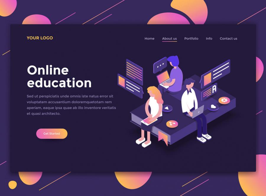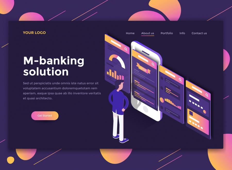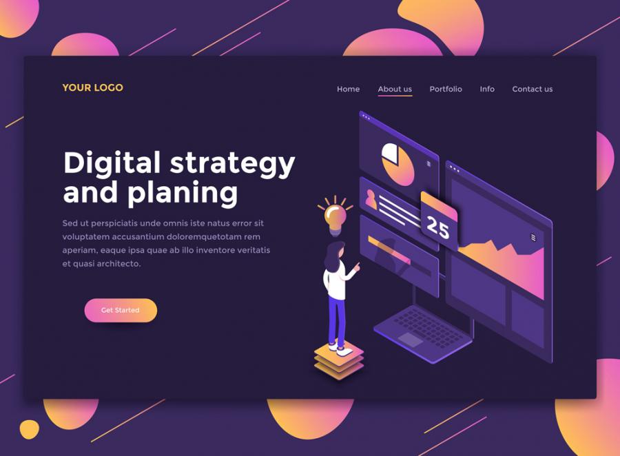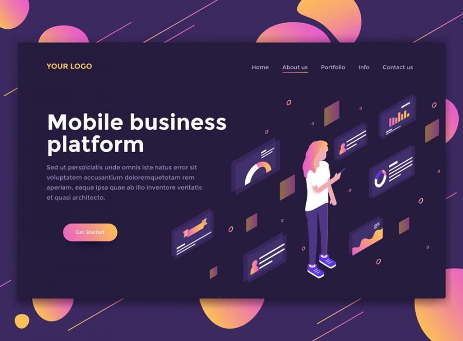 10款2.5D扁平化商务办公UI插图画网页banner设计AI矢量+PSD分层素材增强现实