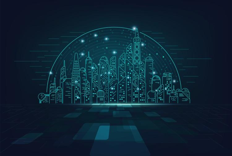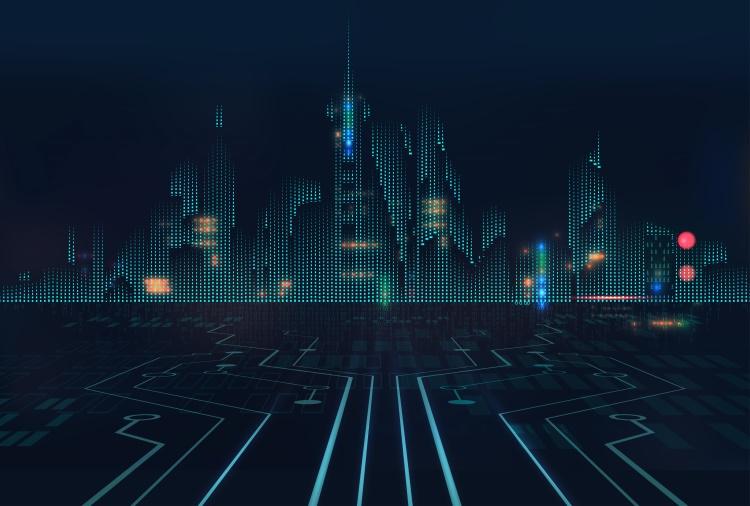 6款电子科技感信息未来城市房地产发展会议背景板底纹AI矢量分层素材