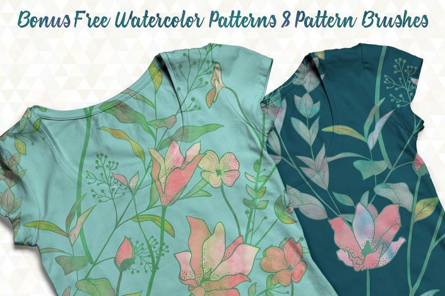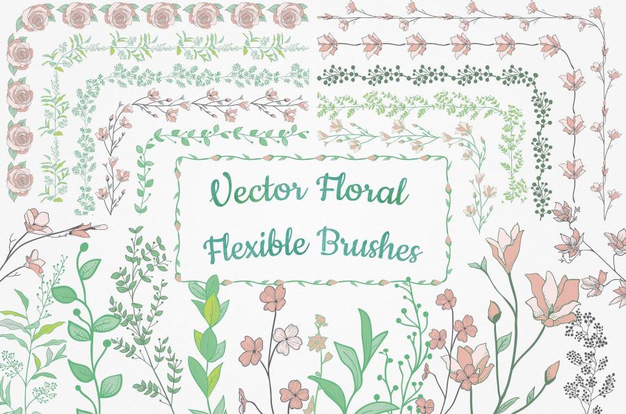 500款绘制绿叶元素鲜花桂冠,无缝模式,矢量图案和艺术花卉分割器和水彩元素合集下载