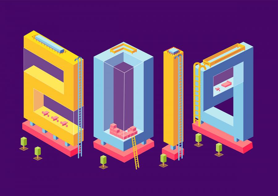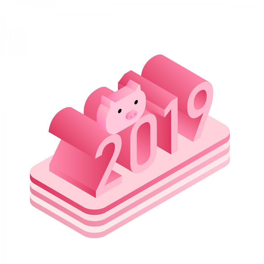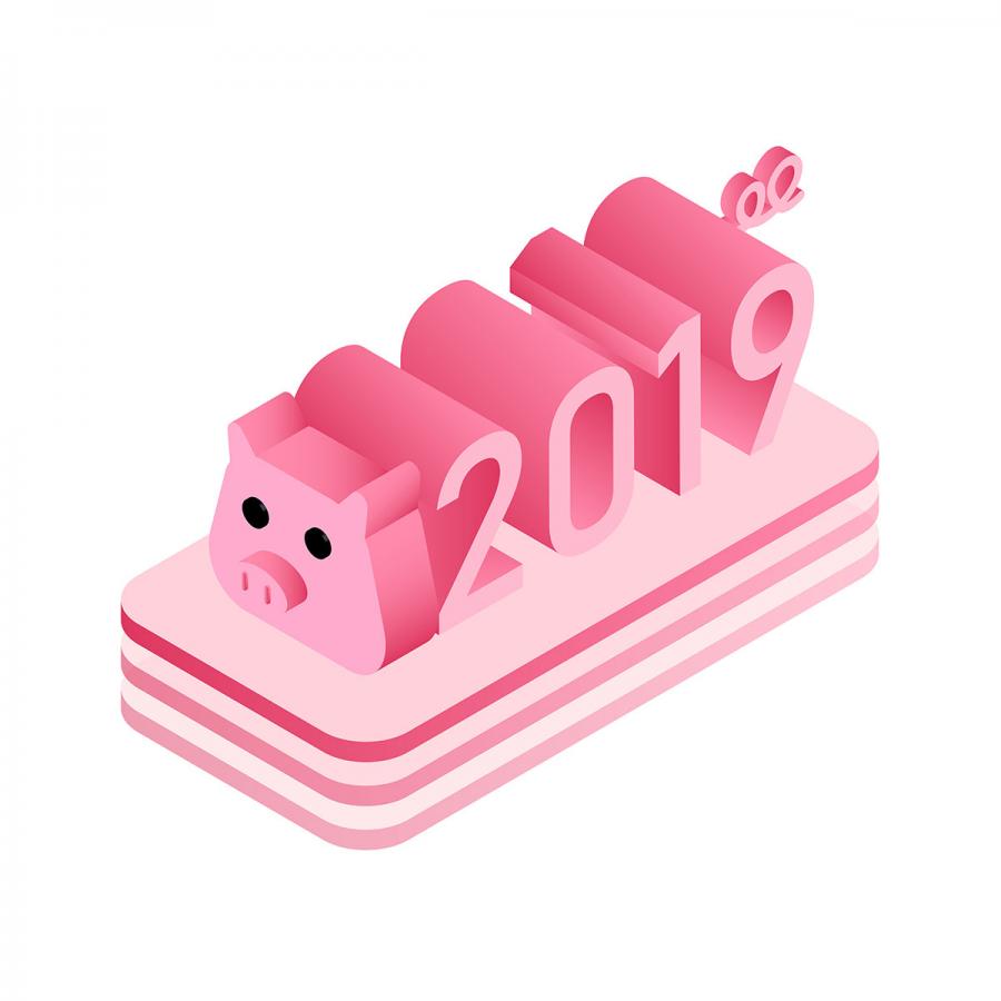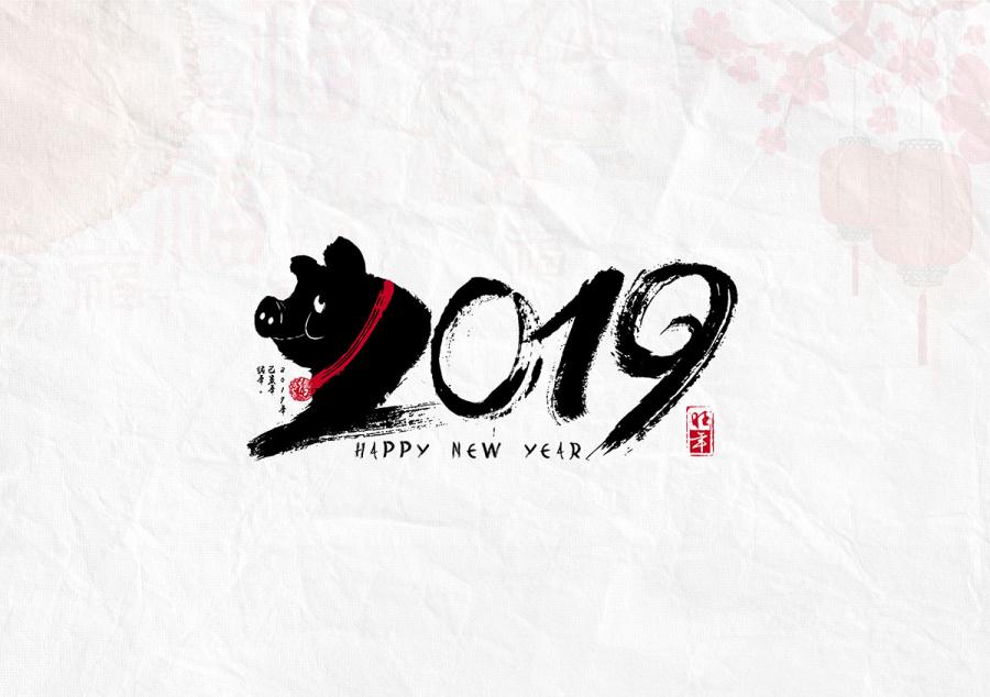 72款2019字体新年元旦圣诞节快乐猪年年会海报背景元素矢量AI设计素材
