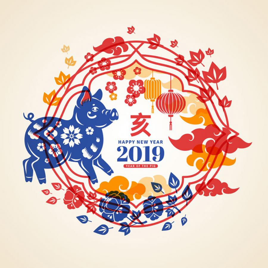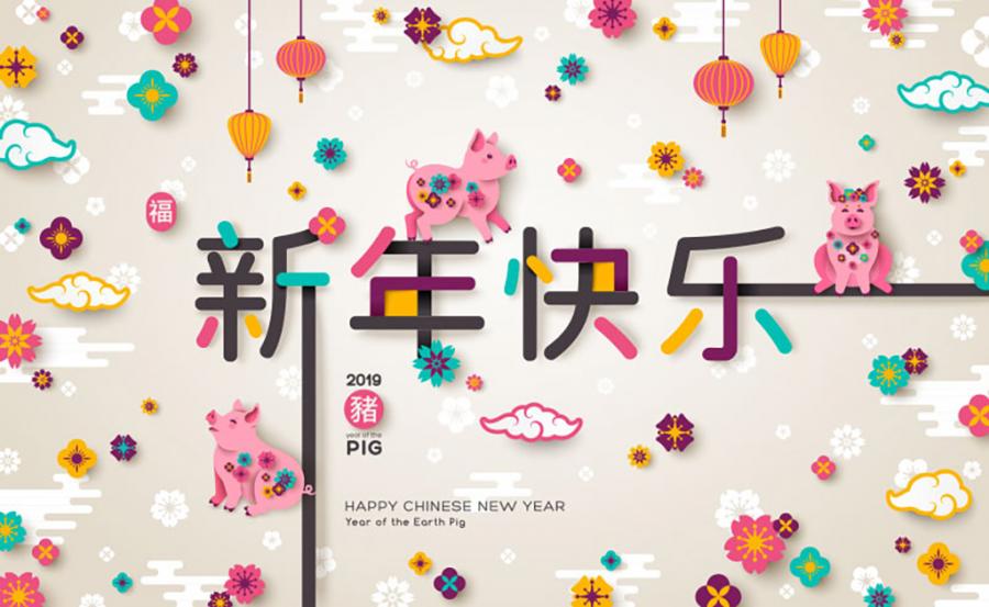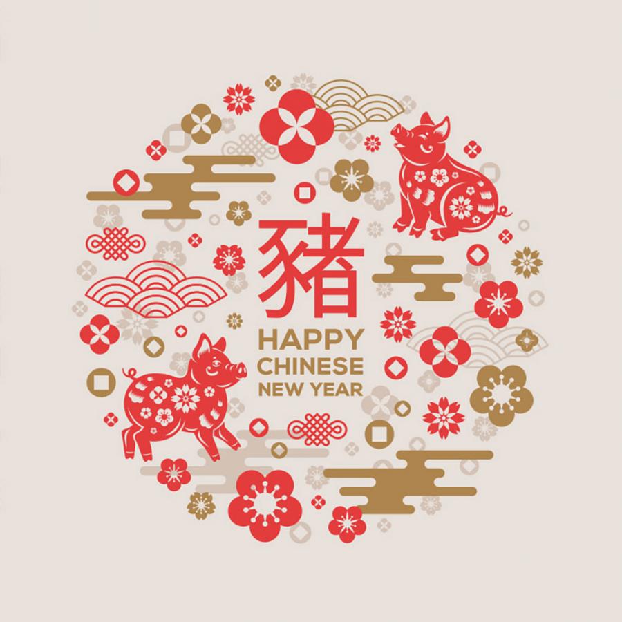 7款新年春节猪年2019年会中式祥云灯笼插图插画AI矢量分层素材