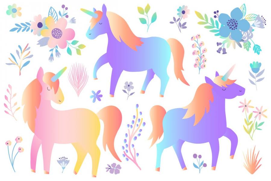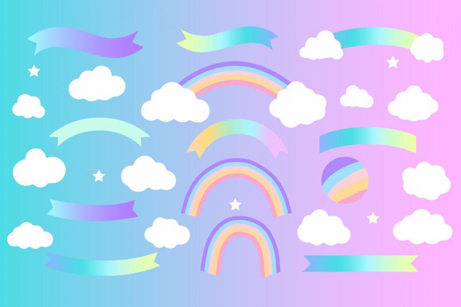 彩虹云炫彩渐变少女心独角兽童话儿童图案AI矢量素材设计印花