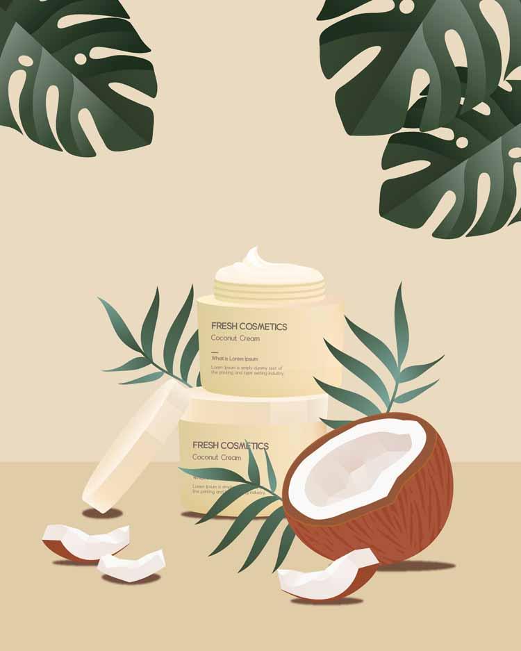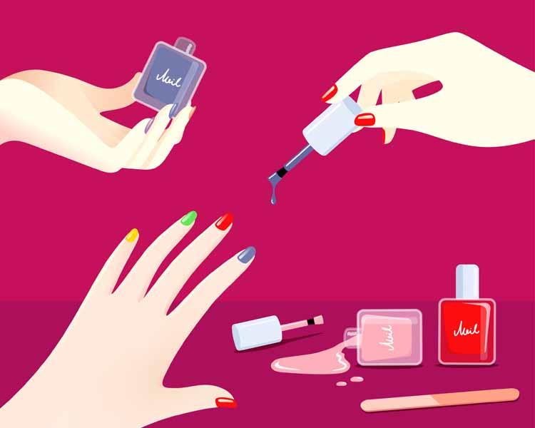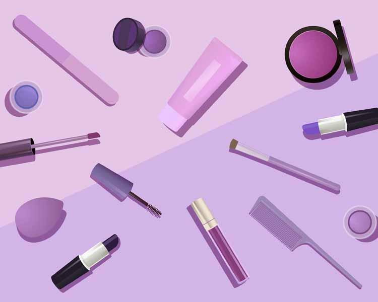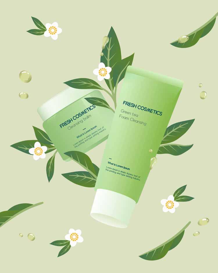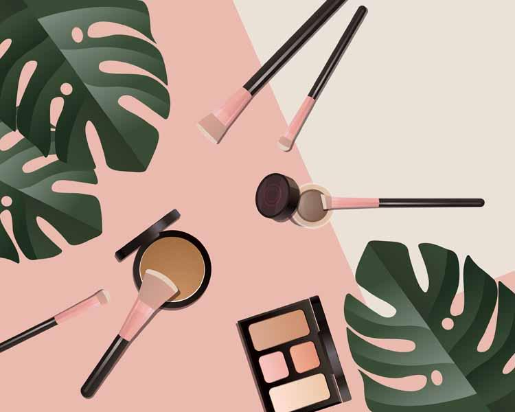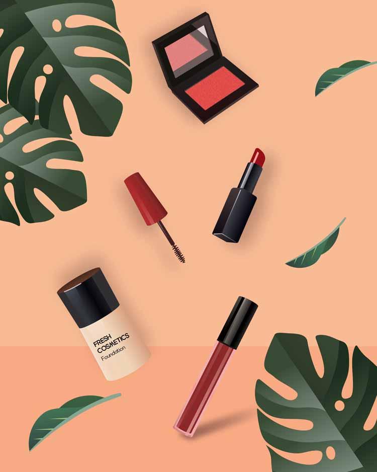 17款手绘女生护肤品面膜指甲油化妆刷产品海报AI矢量源文件素材
