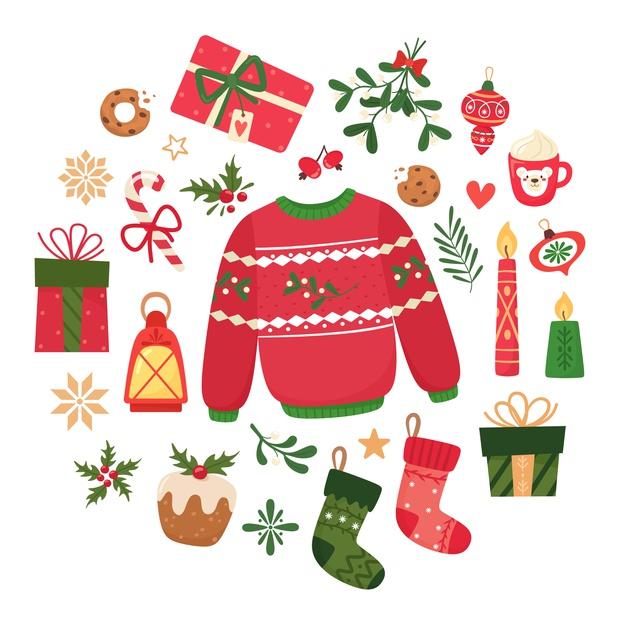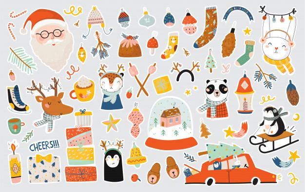 6款圣诞节素材冬季元素圣诞字体手绘图标矢量素材打包下载