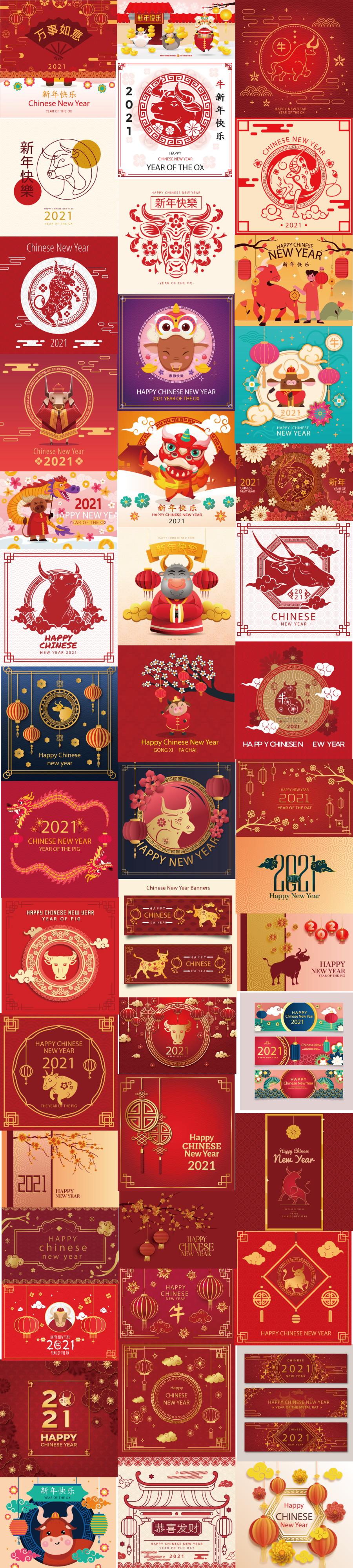 55款喜庆春节2021年牛年迎新年元旦舞台年会海报展板背景矢量素材