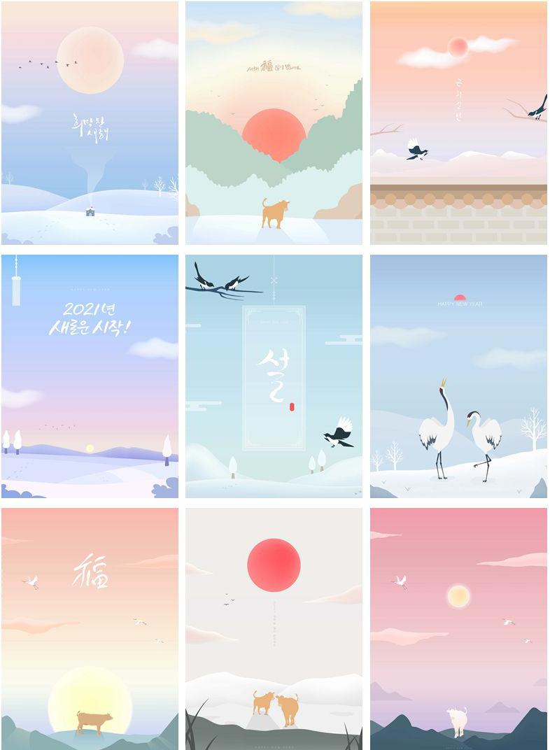 42款中式2022虎年剪纸祥云新年元旦海报红色背景AI矢量设计素材模板